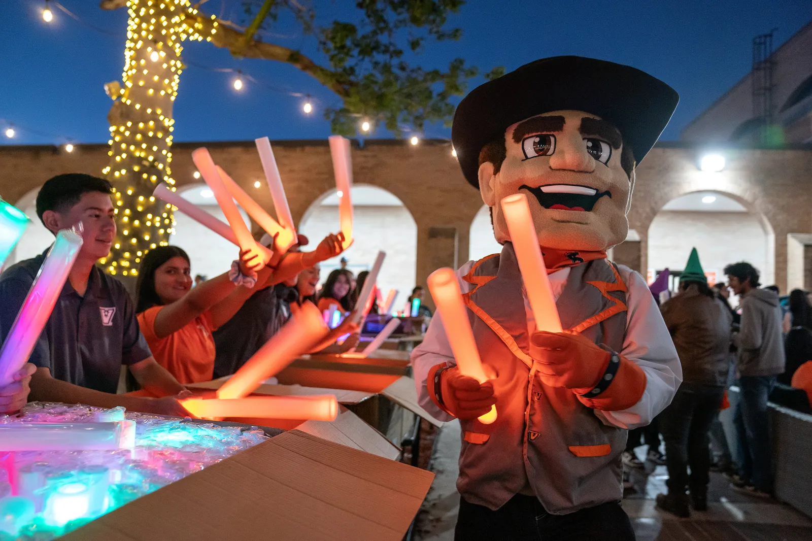 The university mascot at the Pre-Madness Party on Friday, Oct. 28, 2022 at Vaquero Village in Edinburg, Texas.
