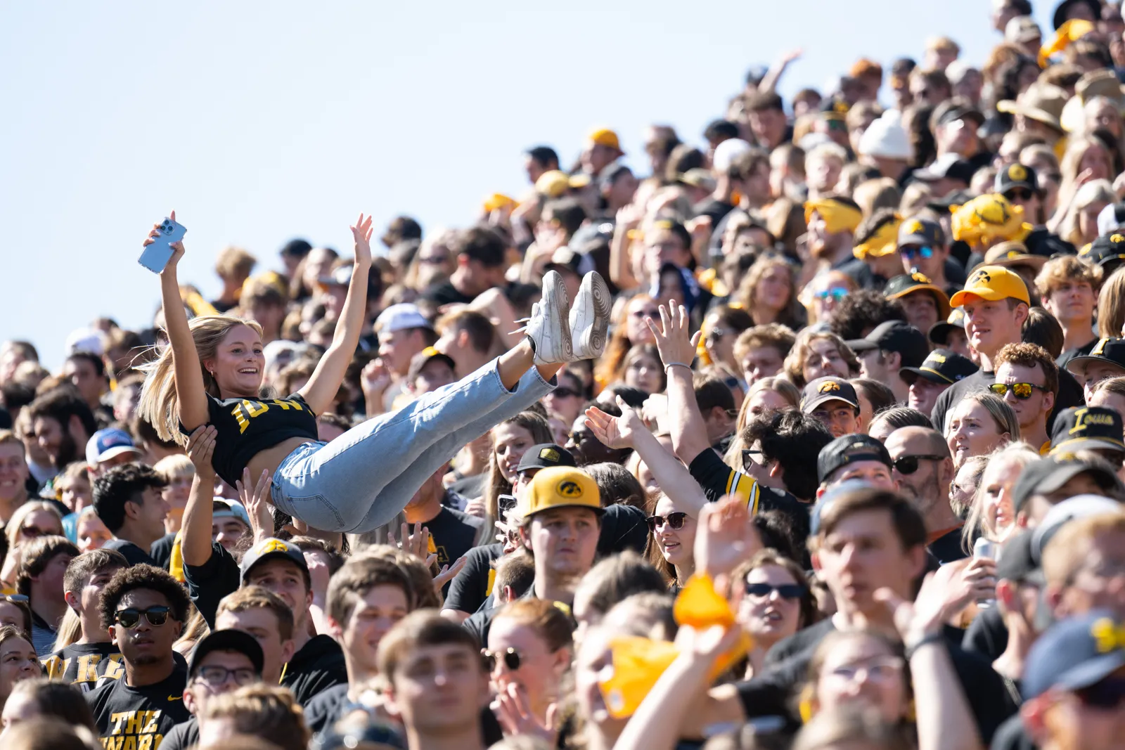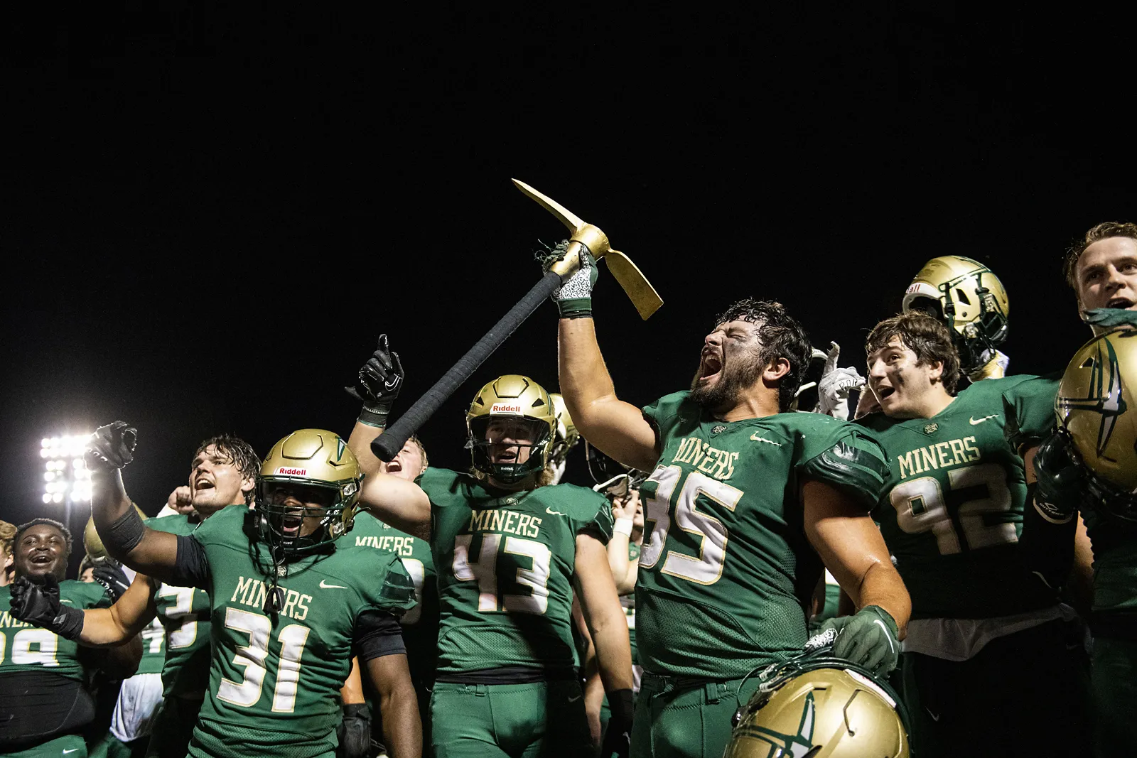 The Miners celebrate and sing the fight song following a victory on Oct. 1, 2022.