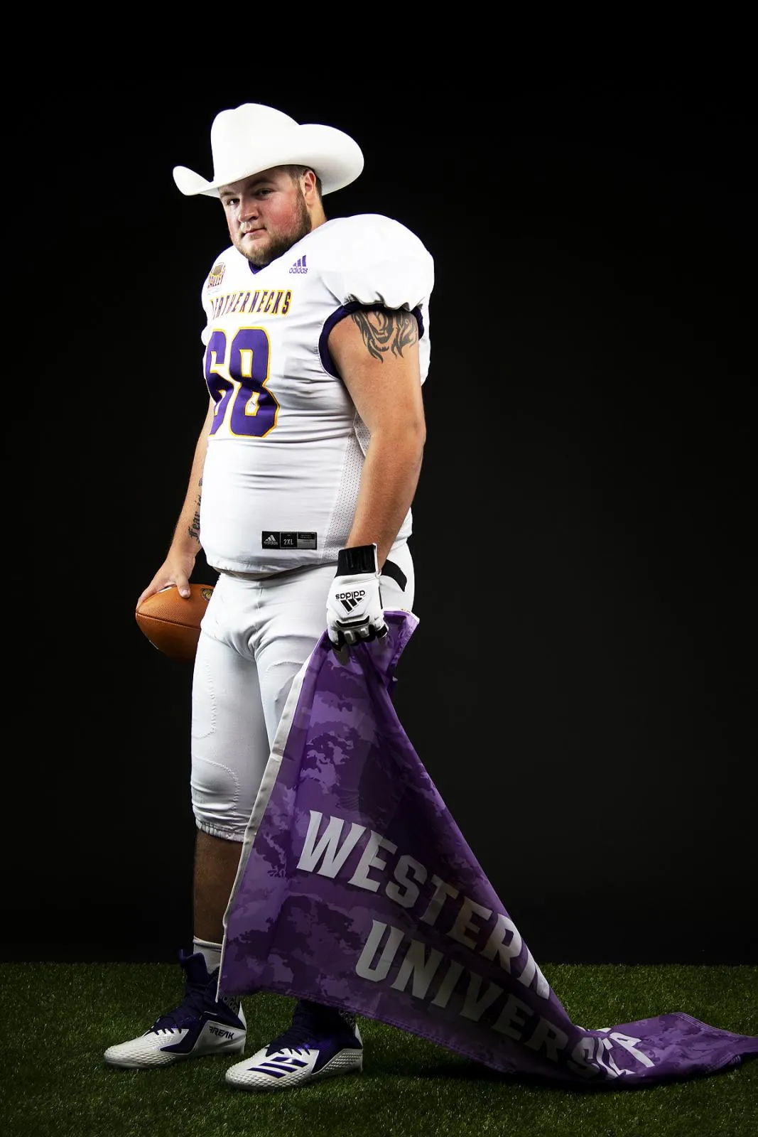 Offensive Lineman Hunter Schrock poses in the studio on football media day.