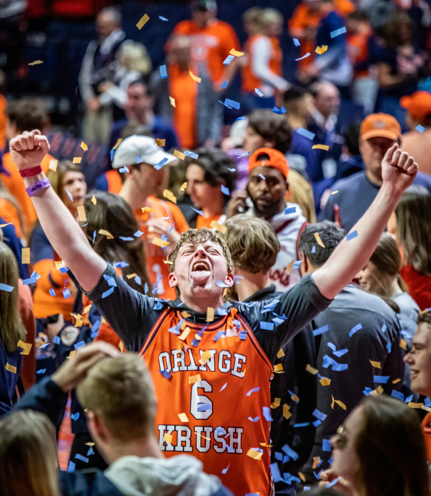 This Orange Krush fan gets a confetti shower as fans flood the floor as the team claims the championship title.