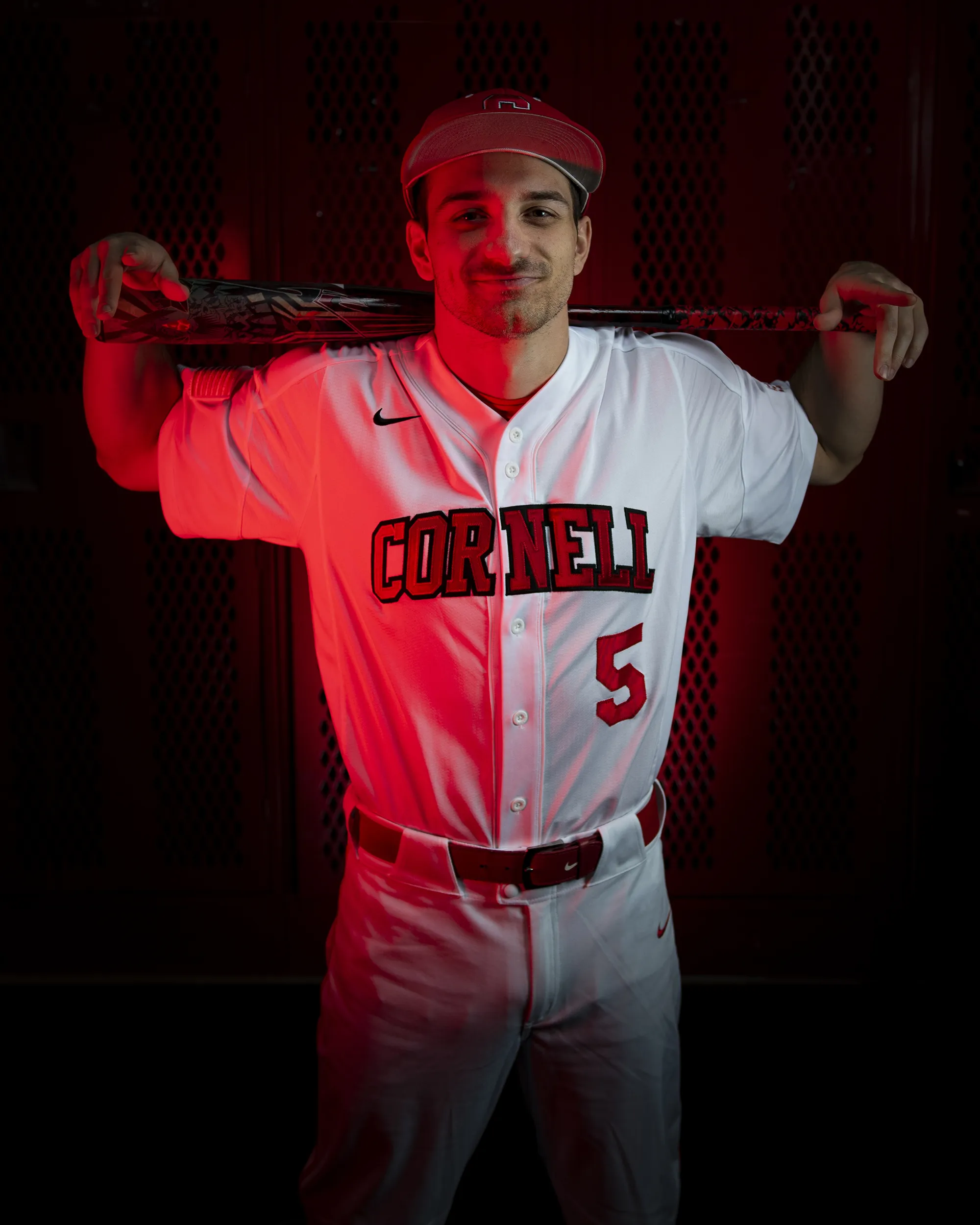 Cornell University junior outfielder Wils Guy poses for feature photos on media day on January 24, 2022 in the locker room behind Hoy Field in Ithaca, NY.