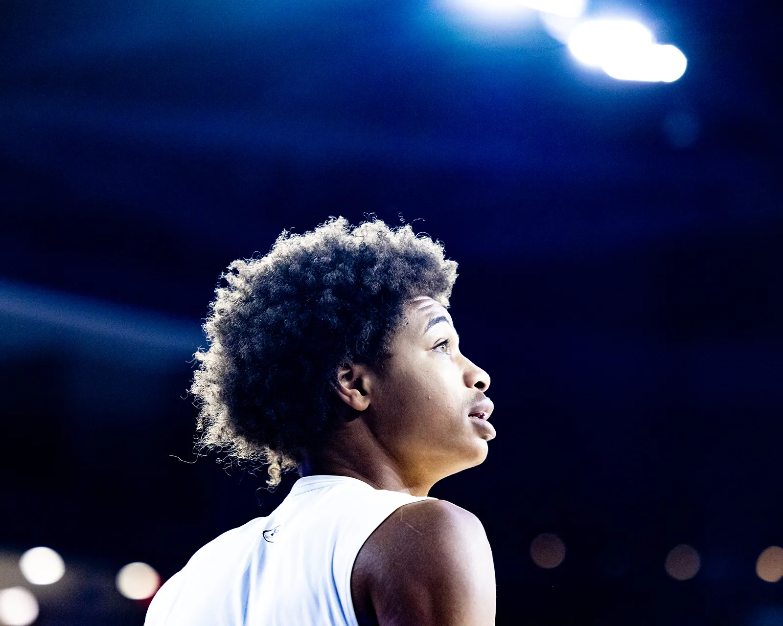 UMass-Lowell sophomore Max Brooks looks up into the rafters prior to the start of the River Hawks game against Sacred Heart.