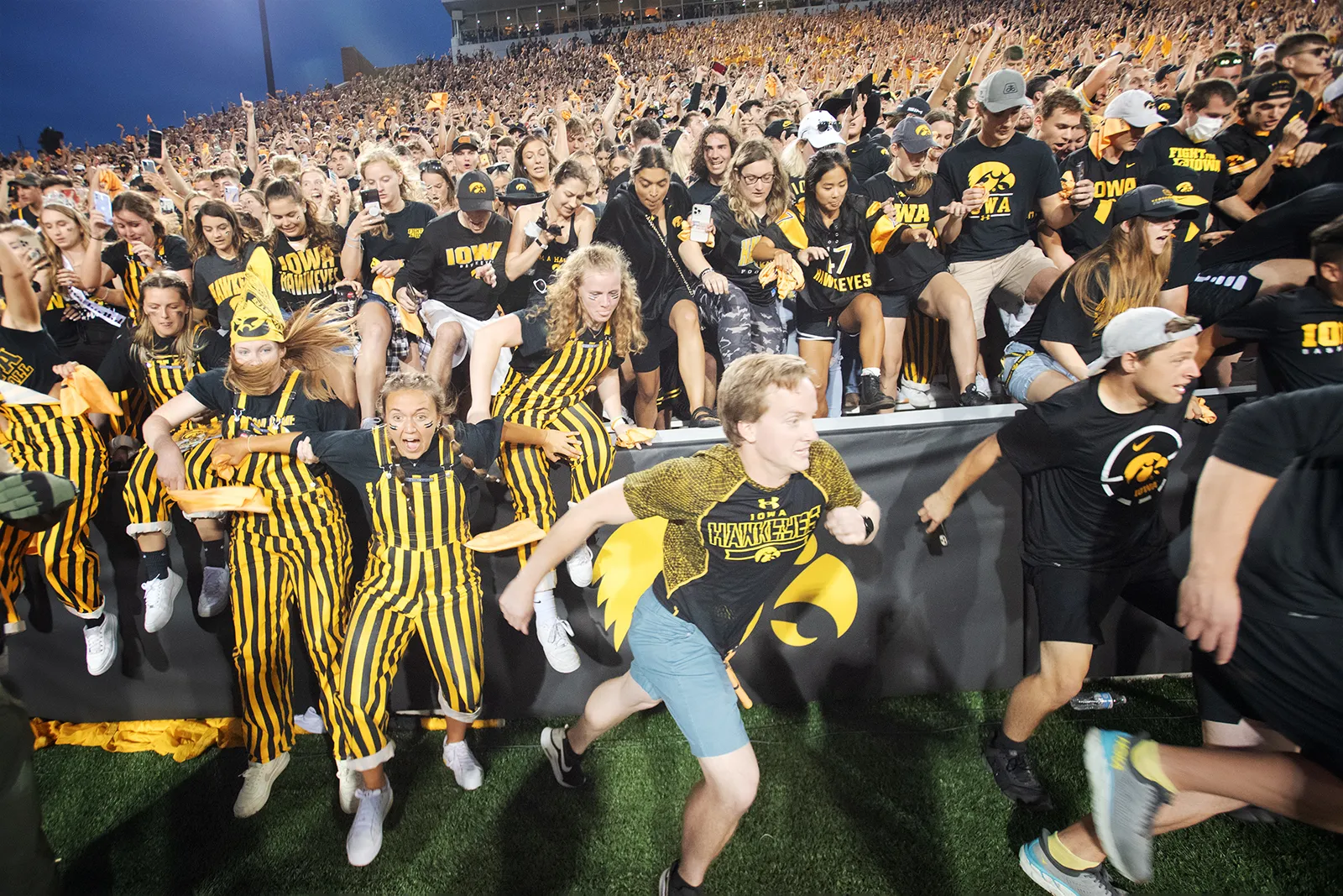 Fans storm the field after a come from behind win over Penn State.