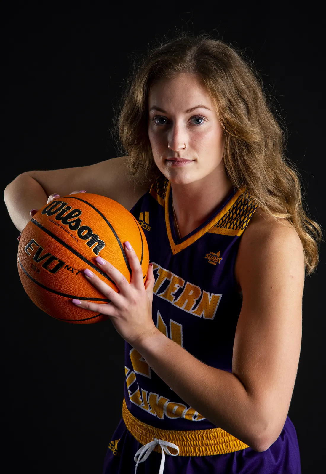Kennedy Flanagan poses for Leatherneck Basketball promo photos in the studio.