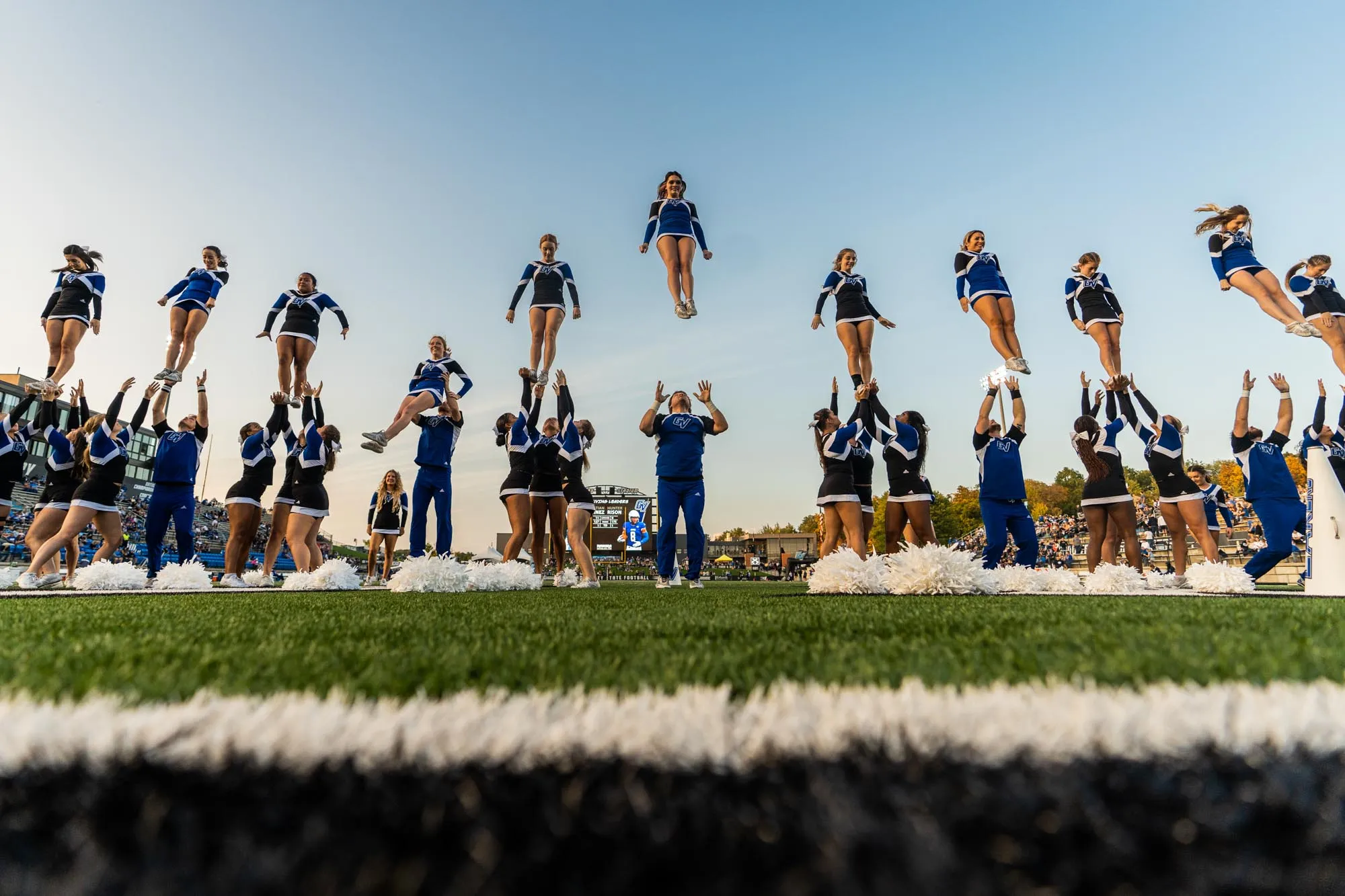 GVSU Cheerleaders perform a stunt on the sidelines of Lubbers Stadium at the Grand Valley State University vs. Northwood University football game on October 9.