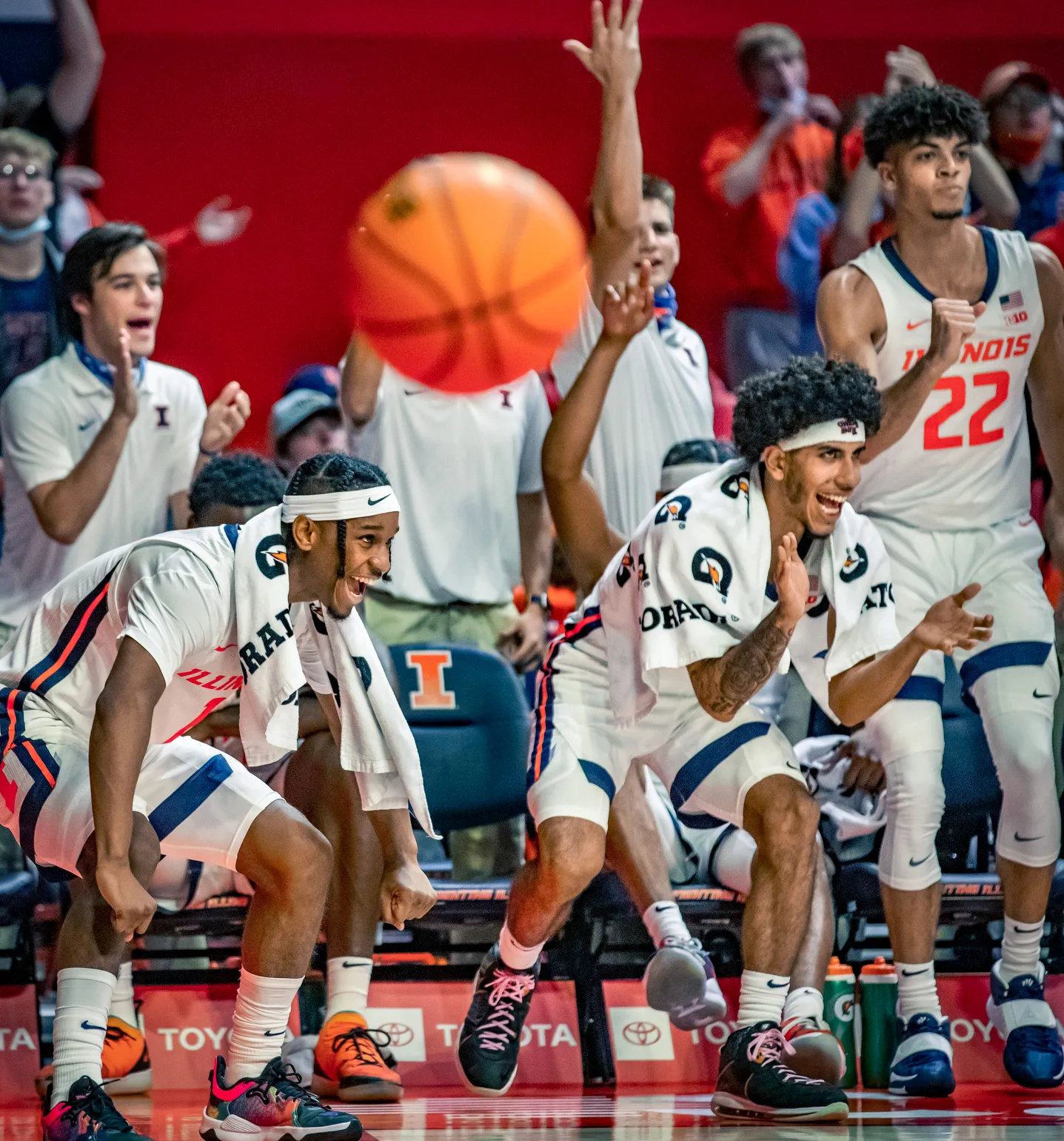 Victory is sweet as the basketball team celebrates a big win. The win was even more special because this was the first game where fans were allowed in the stadium again.