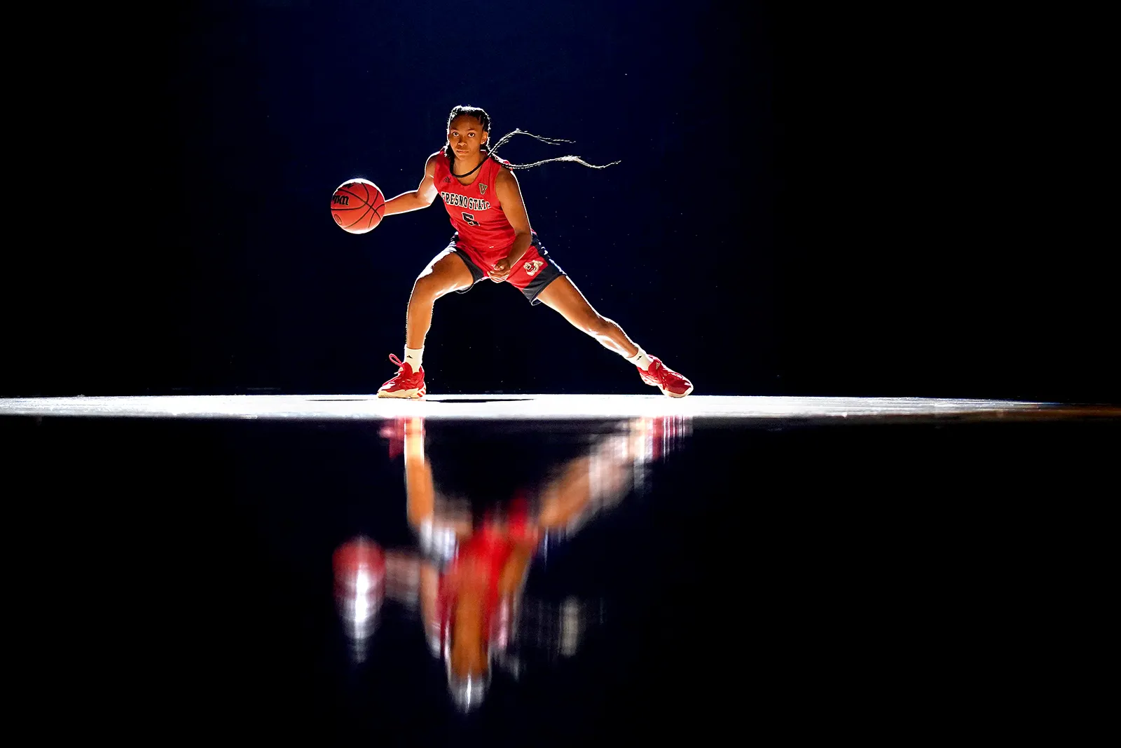 Freshman guard Daylee Dunn dribbles the ball during a photoshoot at the Save Mart Center.