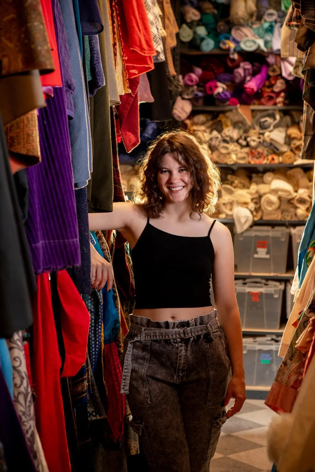 Musical theatre student Abrielle Hambleton in the costume shop at Weber State University.