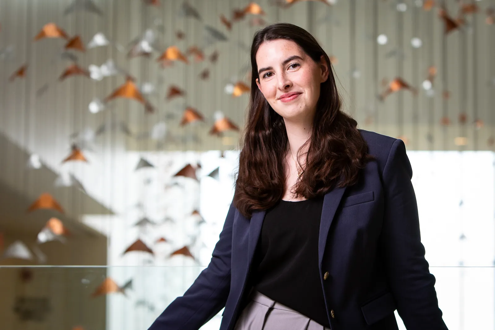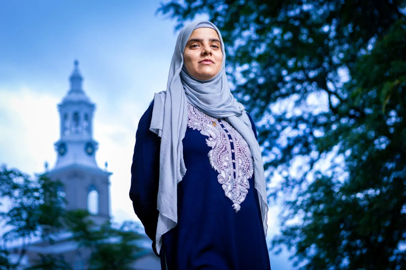 UB graduate student Insha Akram, a member of the Food Systems Planning and Healthy Communities Lab (the UB Food Lab) in the School of Architecture and Planning, was photographed outside Hayes Hall in September 2023.