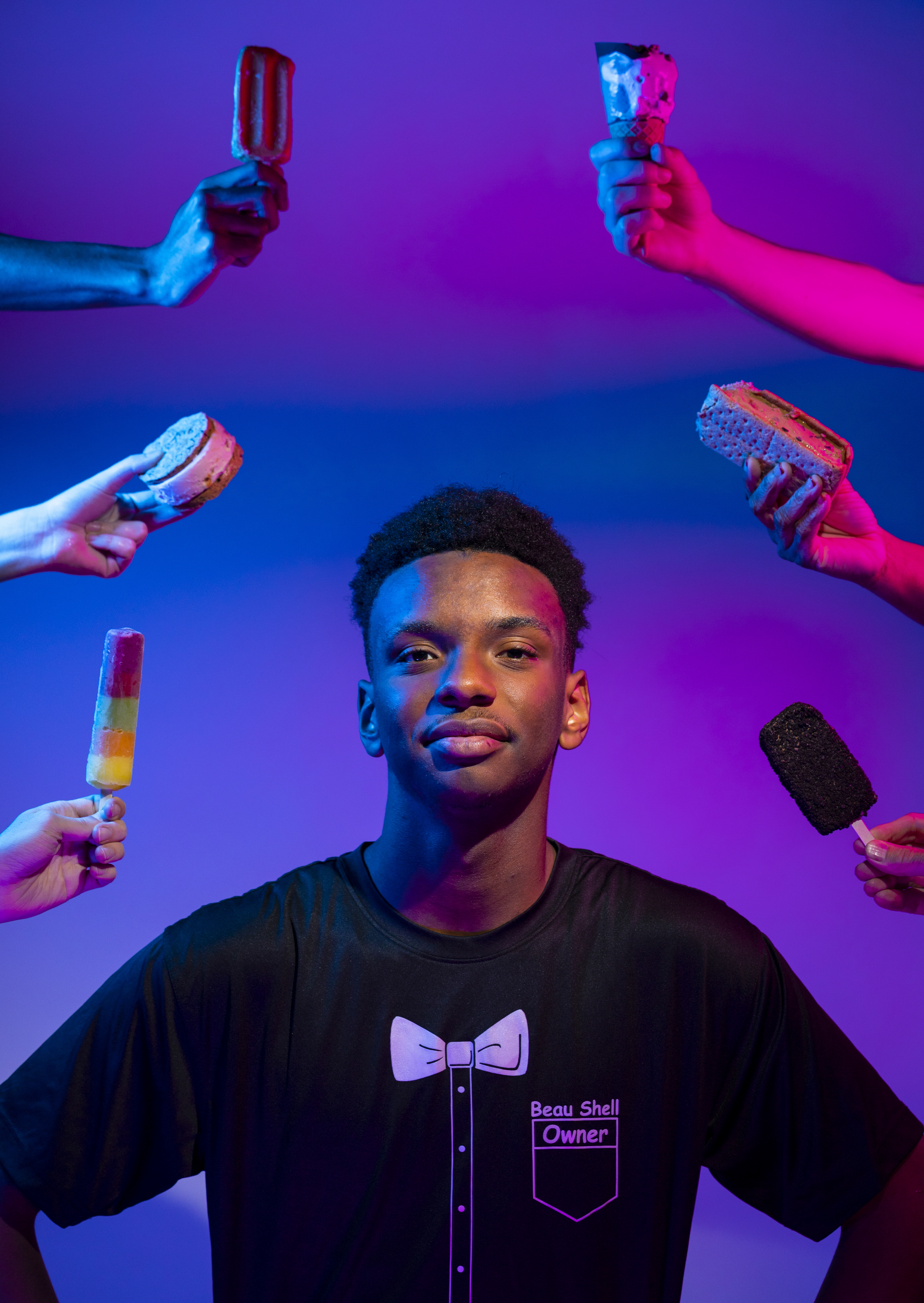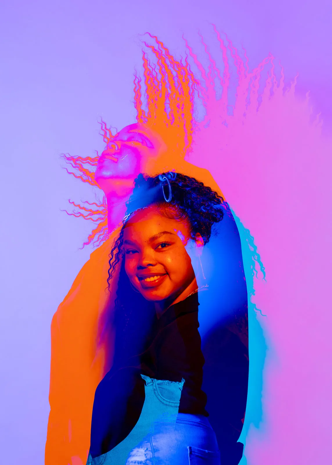 An in camera multiple exposure portrait for an article about a student being a stem-cell donor.