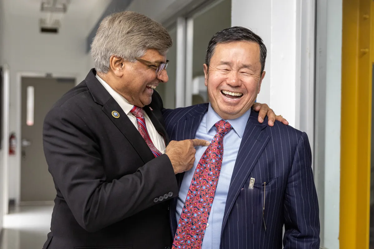 National Science Foundation (NSF) Director Sethuraman Panchanathan visited campus all day, but finished at the MU Research Reactor facility. After viewing the reactor, he and MU President Mun Choi cut up about fatherhood, their children's successes, and shared a joke only the two could hear.