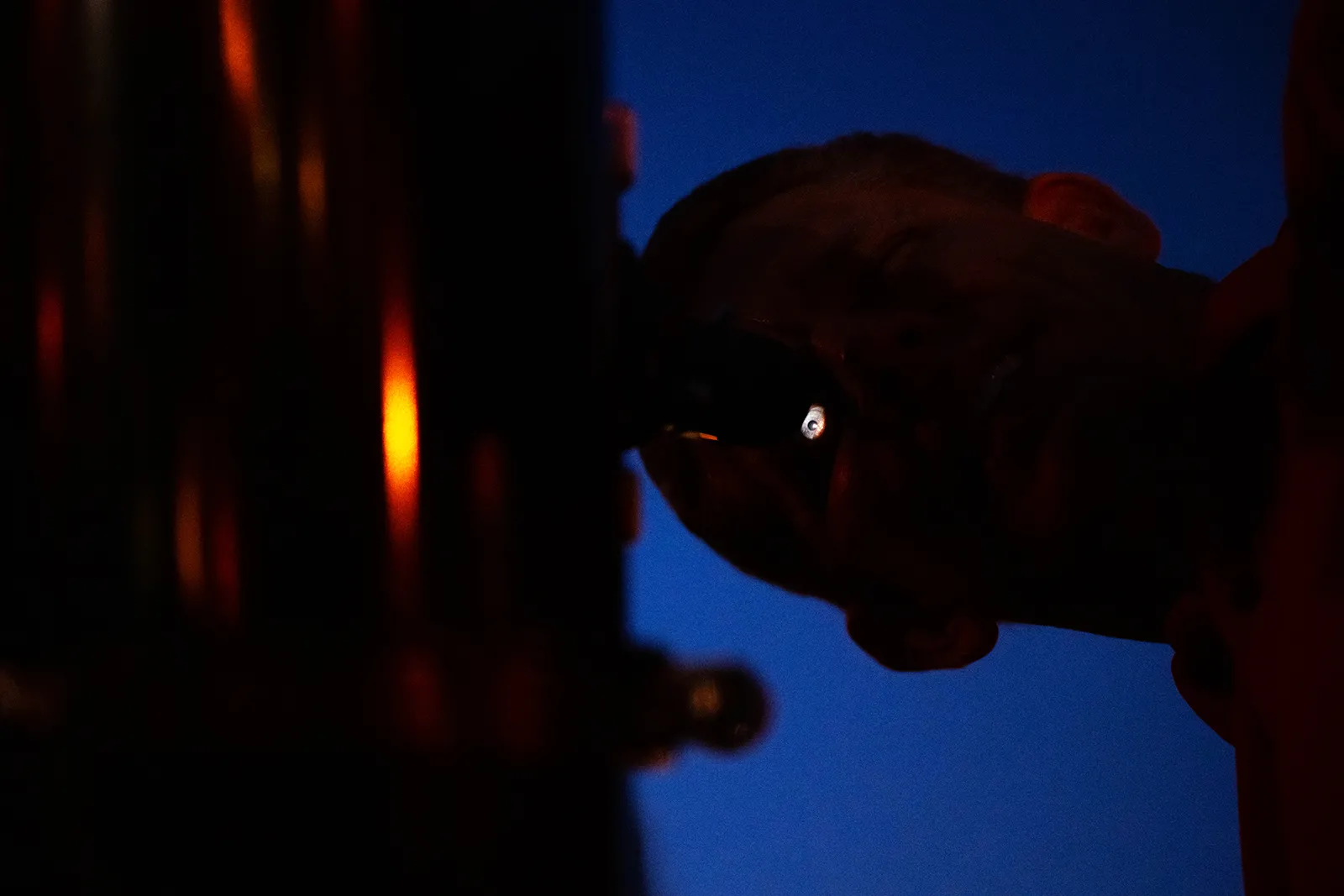 Astrophotographer David Timm looks through his telescope as he brings the moon into focus one evening after work.