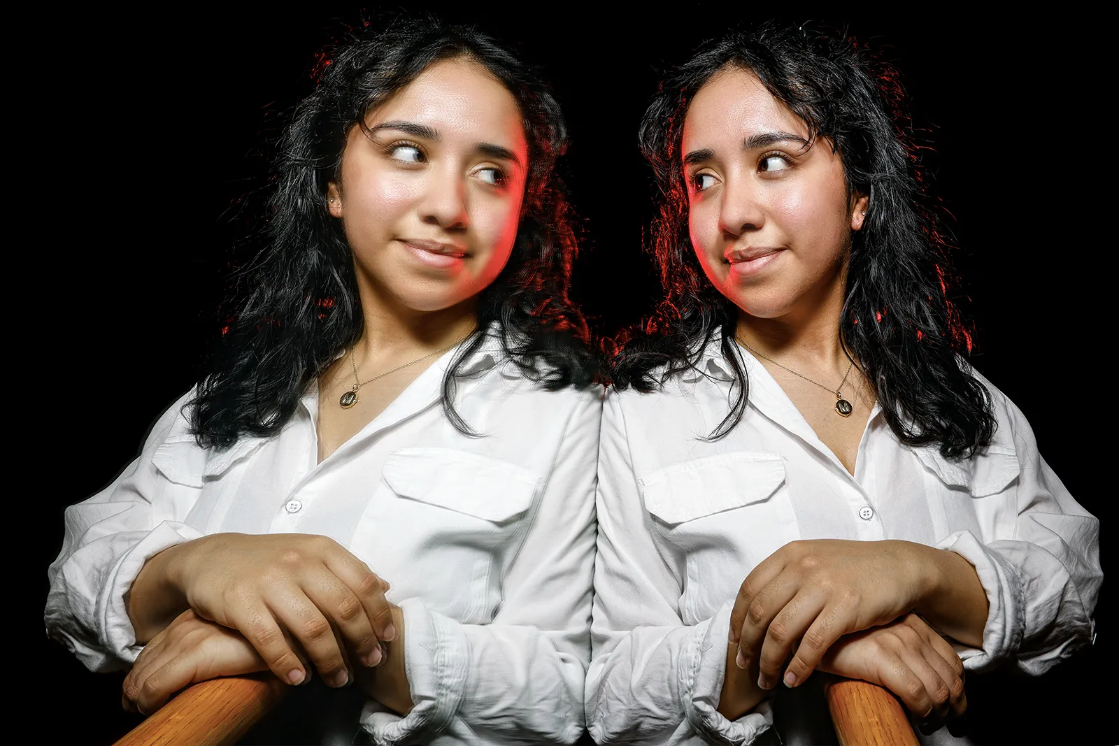 Portrait of University of Illinois Chicago College of Engineering student Monse Castillo reflected in a mirror