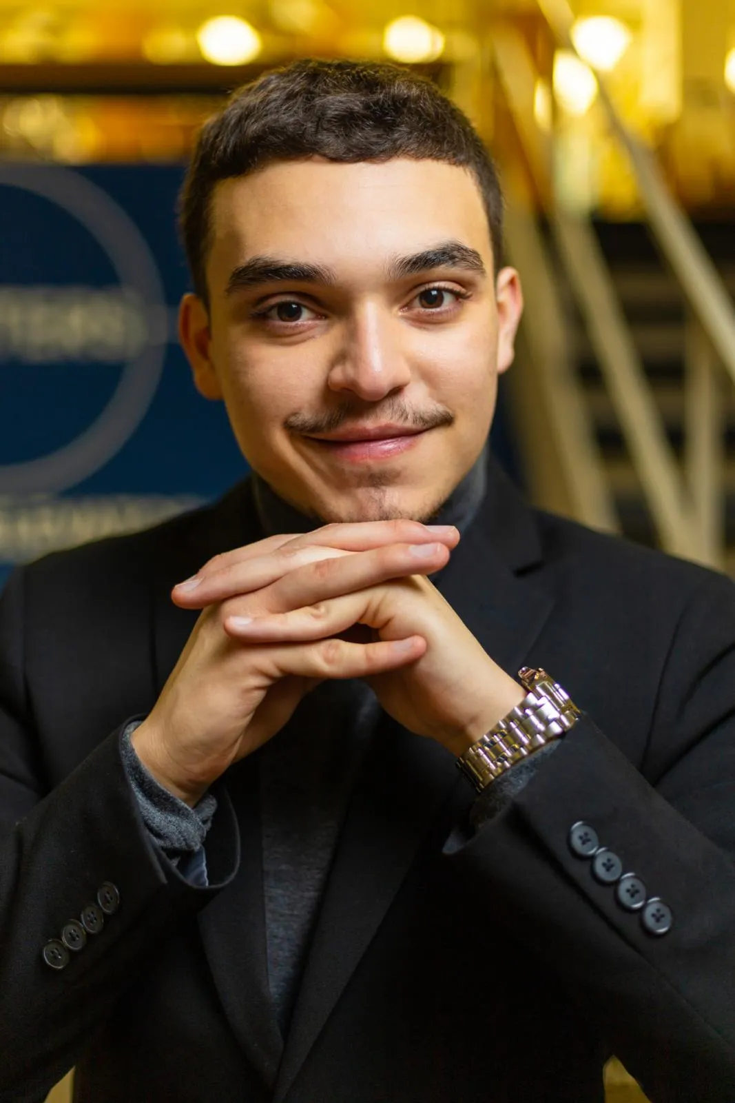 First Generation Honors College student Giancarlo Martinez in the Sears Law Library in O'Brian Hall.