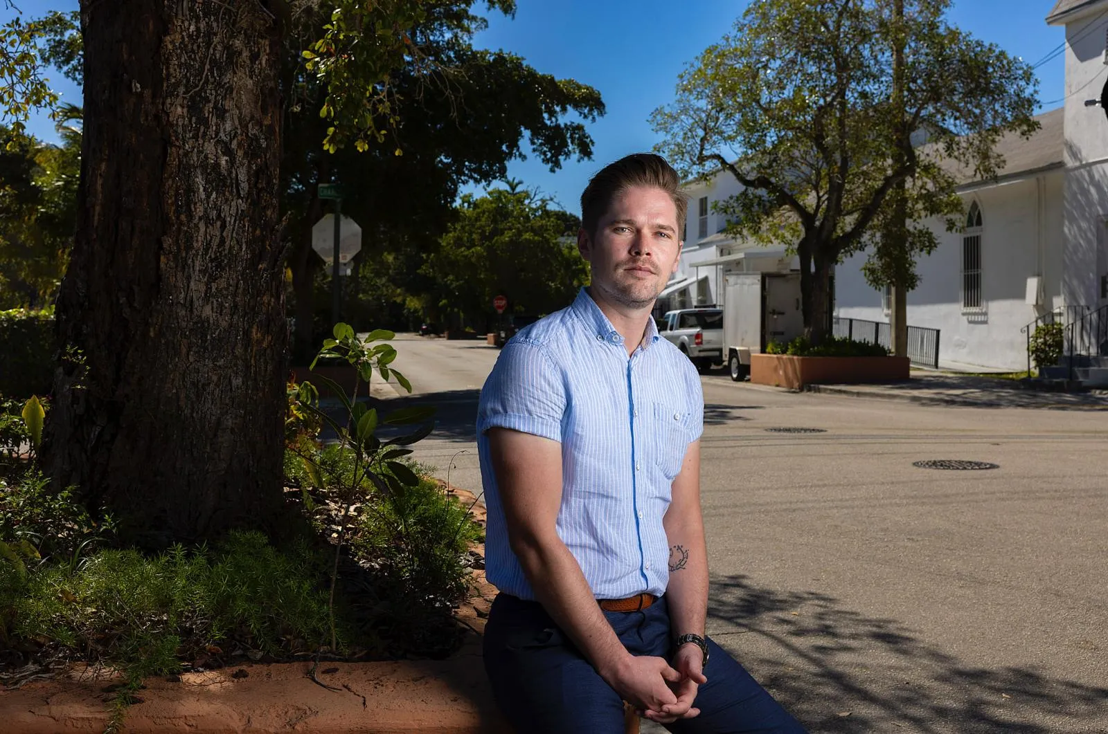 Professor Matthew David Nelsen, poses for a picture in Coconut Grove on the corner of 35th and Charles Ave. near the St. James Baptist Church. The Church is celebrating 107 years of service.