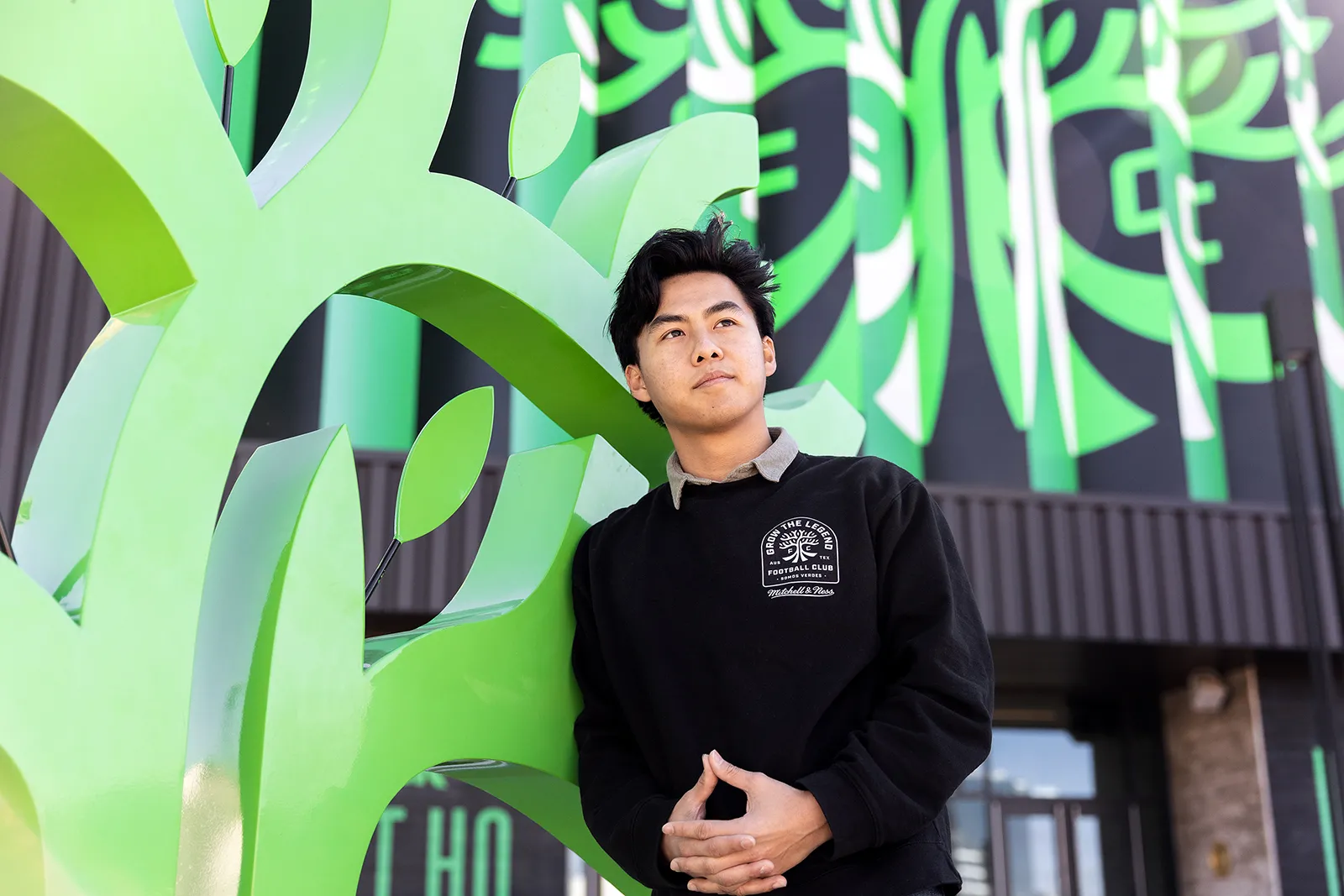 Tony Ho stands outside of Q2 Stadium in Austin, Texas, on Wednesday, Jan. 25, 2023. Ho is a St. Edward's alum who currently works on Austin FC's staff in their marketing office.