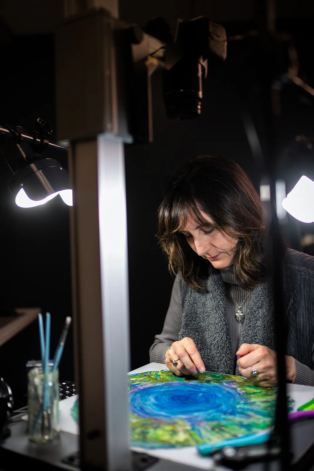 Amanda Sweger, a lighting and scenic designer, professor of theater, and chair of her department, Friday, Feb. 10, 2023. (Sy Bean / Pacific Lutheran University)