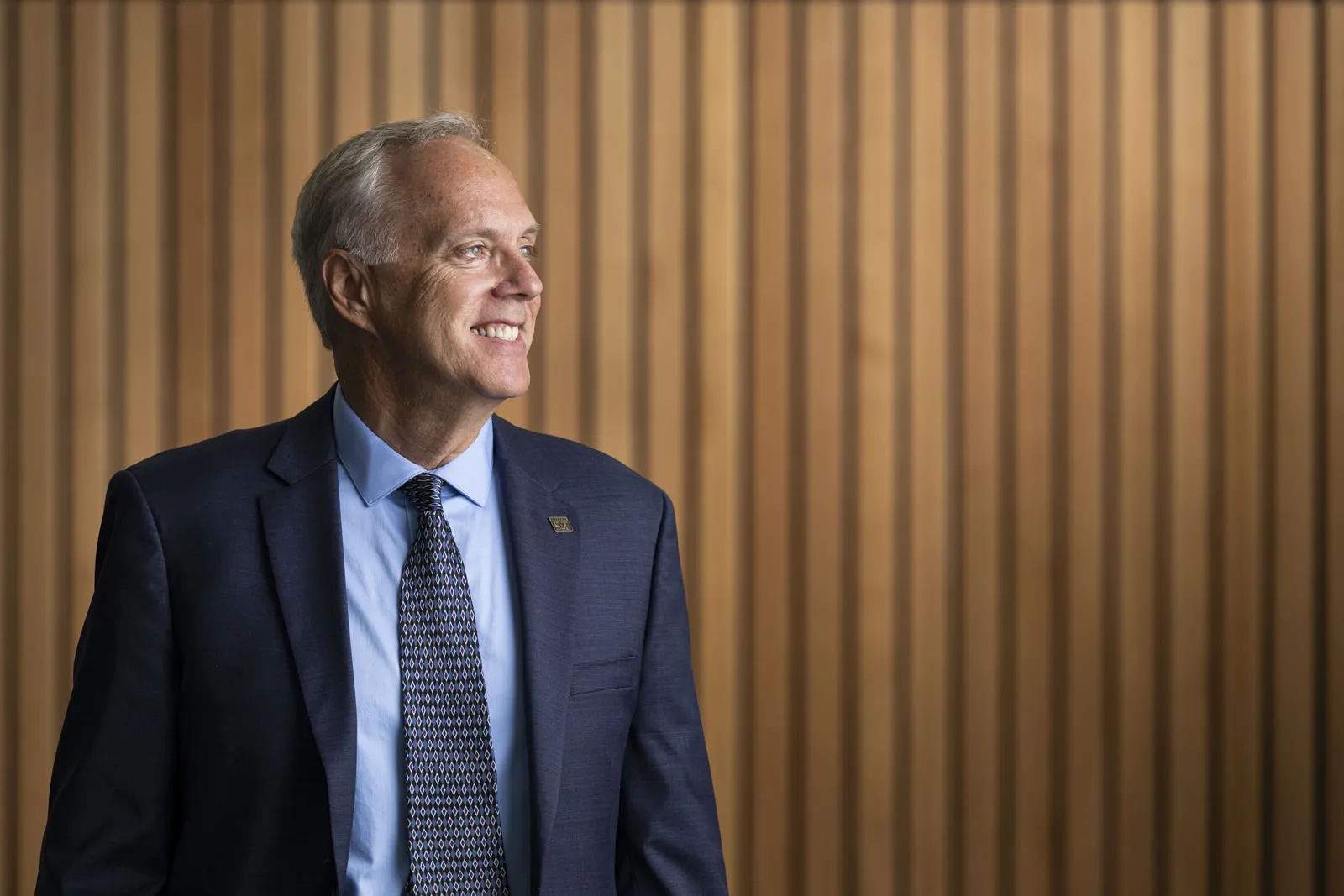 The new provost is looking towards a bright future for the university in this portrait taken to introduce him to the university community.
