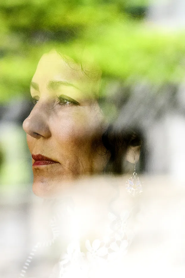 WATERVILLE, MAINE – JULY 30 Hiʻilei Julia Kawehipuaakahaopulani Hobart (Kanaka Maoli) poses for a portrait in the Studio Production Room in the Gordon Center for Creative and Performing Arts on Wednesday, July 30, 2025. Hobart ’03 is an Assistant Professor of Native and Indigenous Studies at Yale University. An interdisciplinary scholar, she researches and teaches on issues of settler colonialism, environment, and Indigenous sovereignty. The Center for the Arts and Humanities Summer Institute on the Environmental Humanities brought Hobart as one of the seminar leaders.