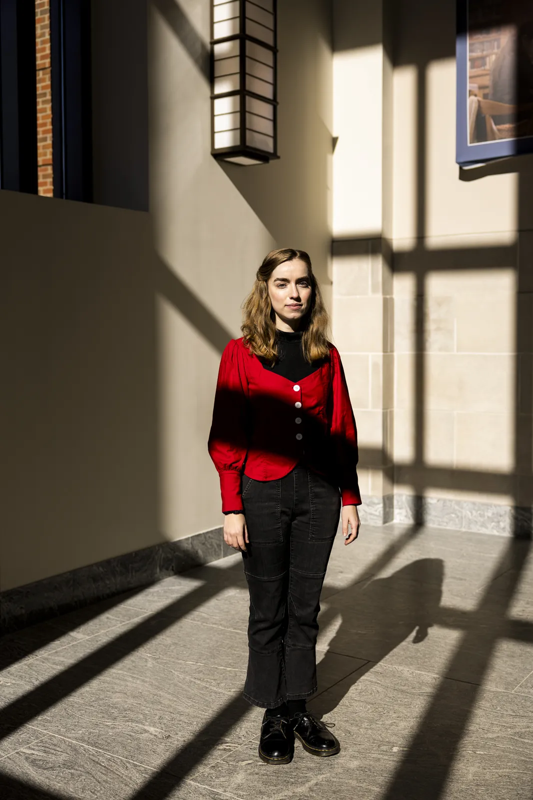 Maggie Neel, PhD student and Georgia on My Mind exhibit curator, poses for a portrait at the Special Collections Library where the exhibit is housed.