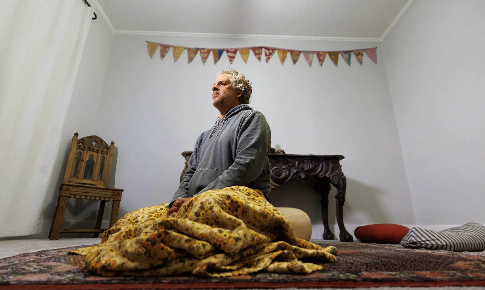 For a new series, we are photographing each college dean doing their favorite off-campus way to relax. Andy Belser, Dean of the Hixson-Lied College of Fine and Performing Arts, meditates in his Lincoln home.