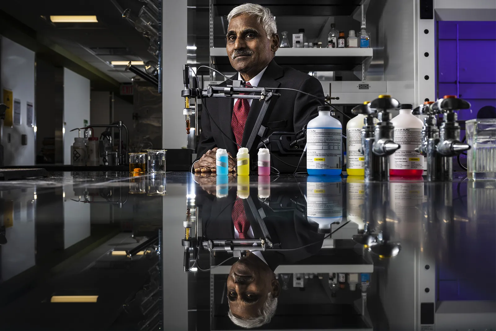 Always in suit and tie, Dr. Reddy poses for a portrait in advance of an international honor for research.
