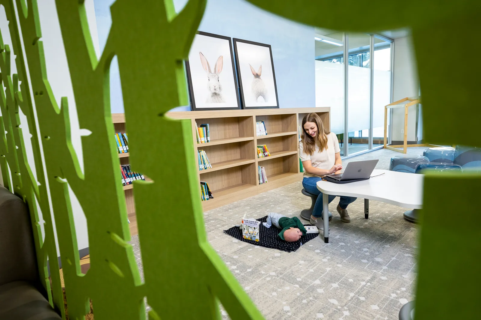 UVU's new family study space in the Fulton Library. Taken as part of the lifestyle shoot for new parent resources.