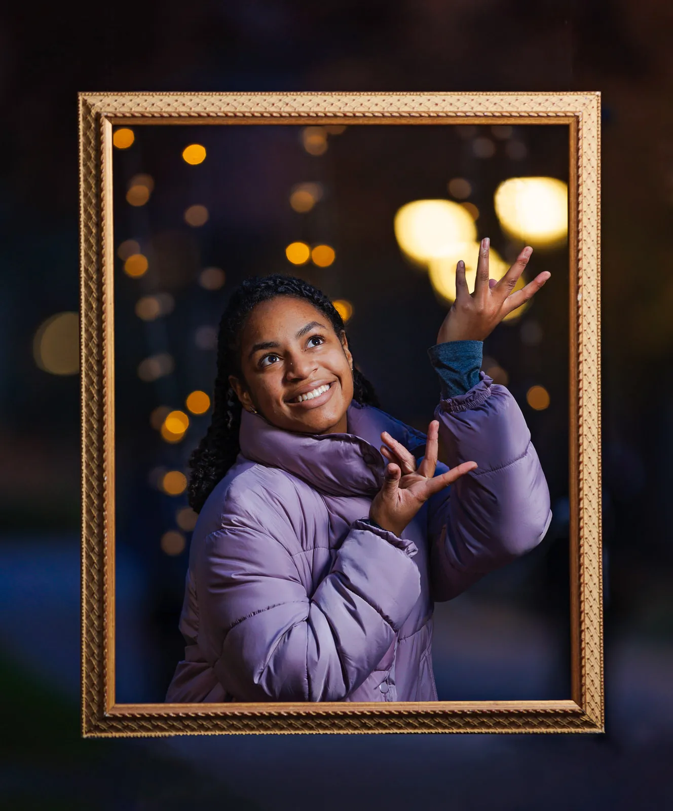 Charlyne Banks poses for a promotional photoshoot for University Housing and Dining Services' student leaders campaign.