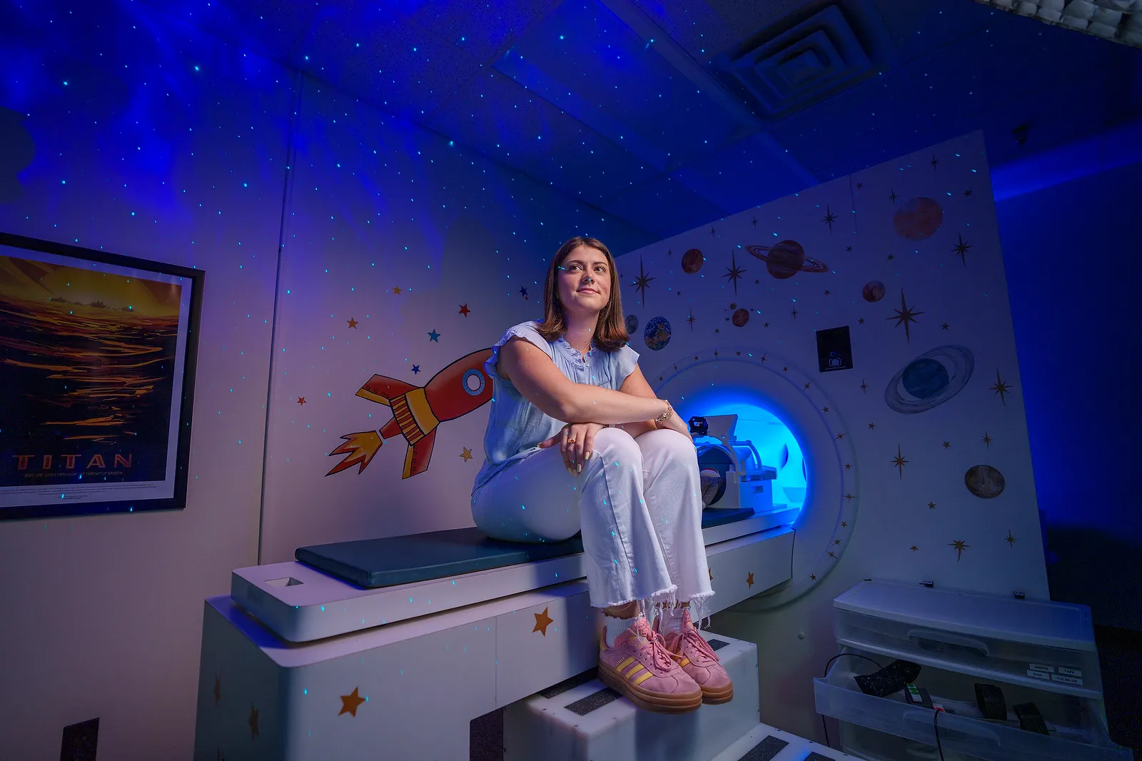 Lillian 'Lily Mae' Cochell in the lab where she works on her Immersion project working with ways to help children overcome fear while getting an MRI.