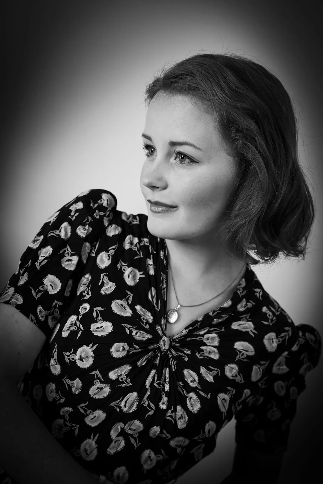 A student actress poses for a 1940s era portrait for promotion of Southern Virginia Universities production of Arthur Miller's "All my Sons".