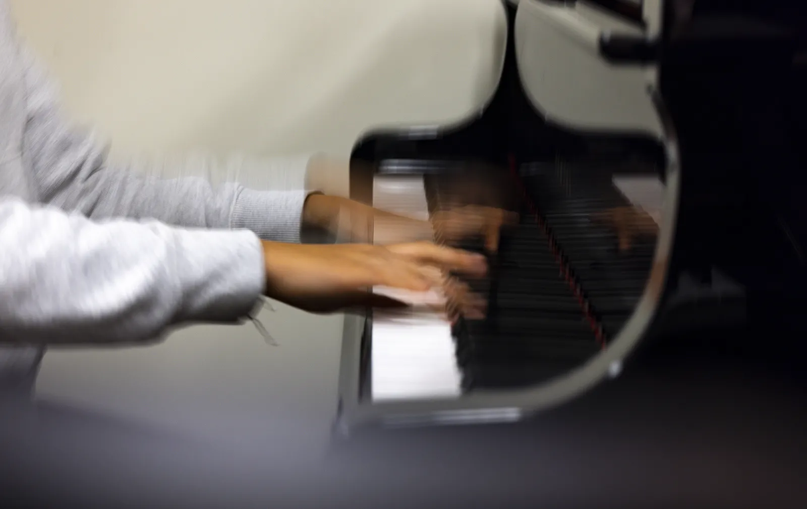 Practice Makes Perfect: Music in motion as a music student runs through a rehearsal for an up-and-coming concert.