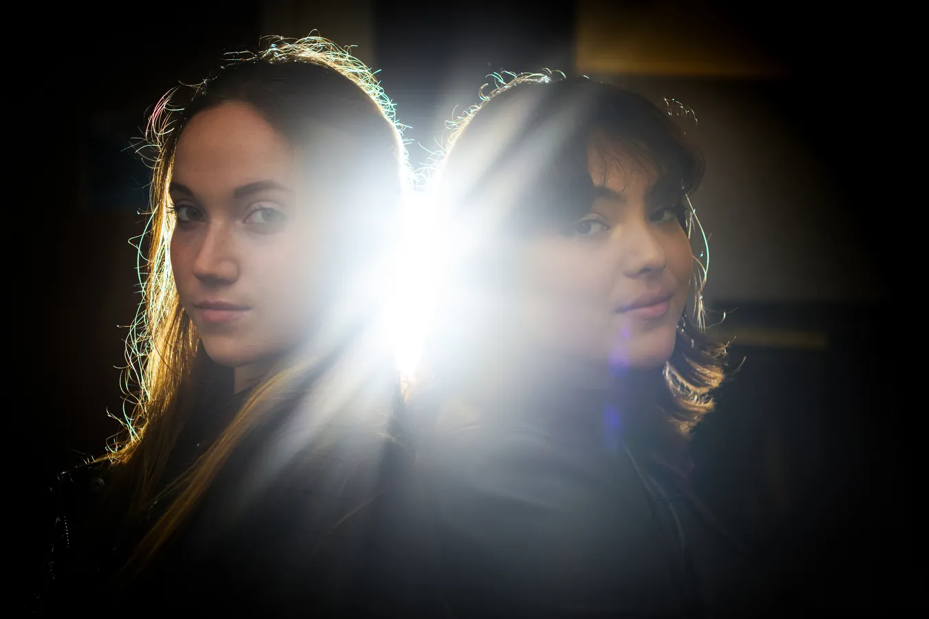 Julia Linden and Andrea Larez, two second-year music industry students, perform in the Shillman recording studio on Tuesday, Sept. 13, 2022. Linden and Larez, tired of the gender inequities that still plague the music industry, founded the first collegiate chapter of Women in Music, a nonprofit with a global presence that provides resources to women in the music industry.