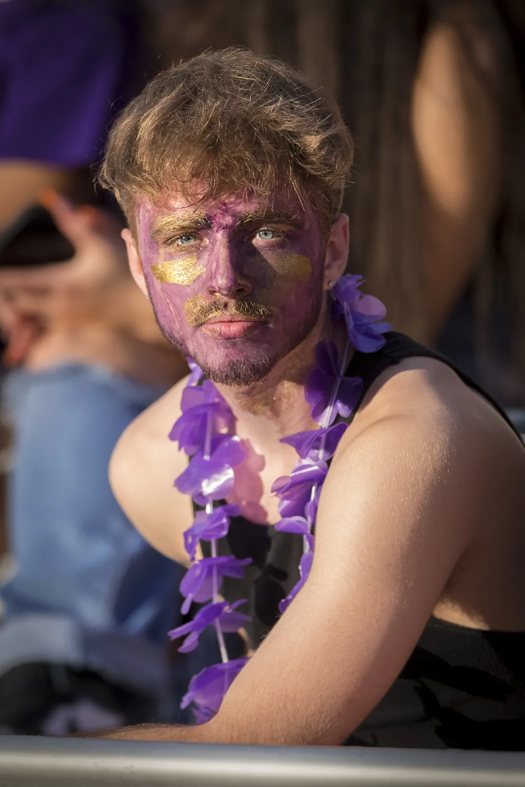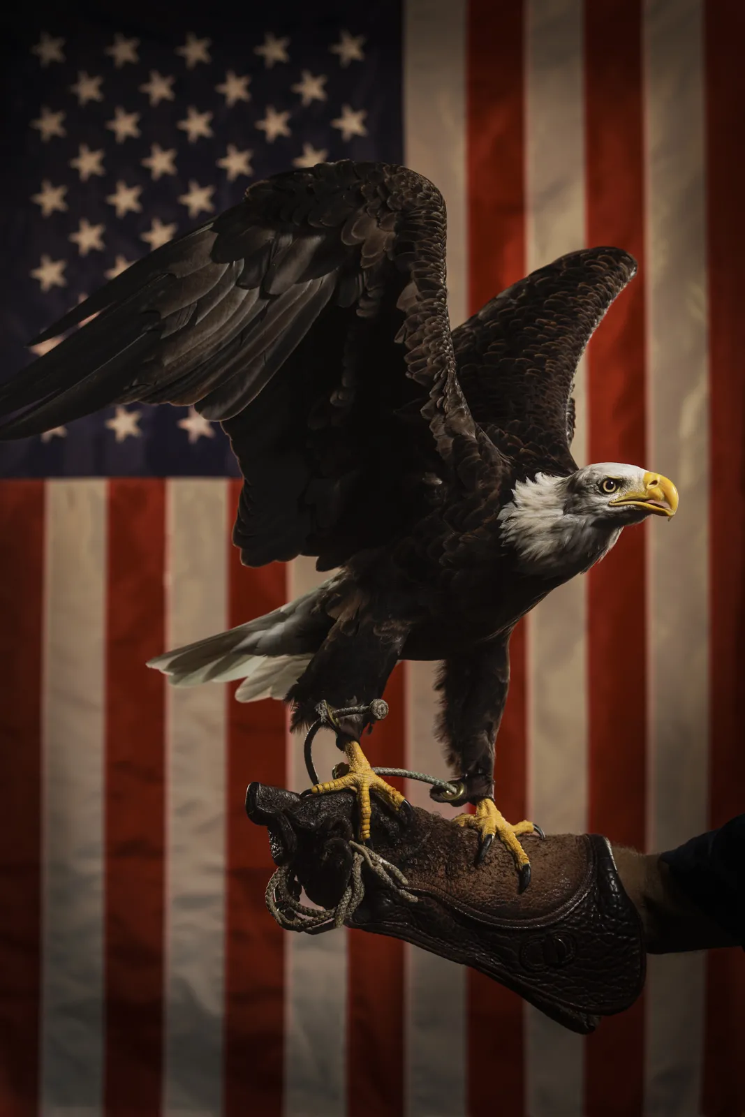 Freedom, the live mascot for the university, poses in the studio for his annual portrait.