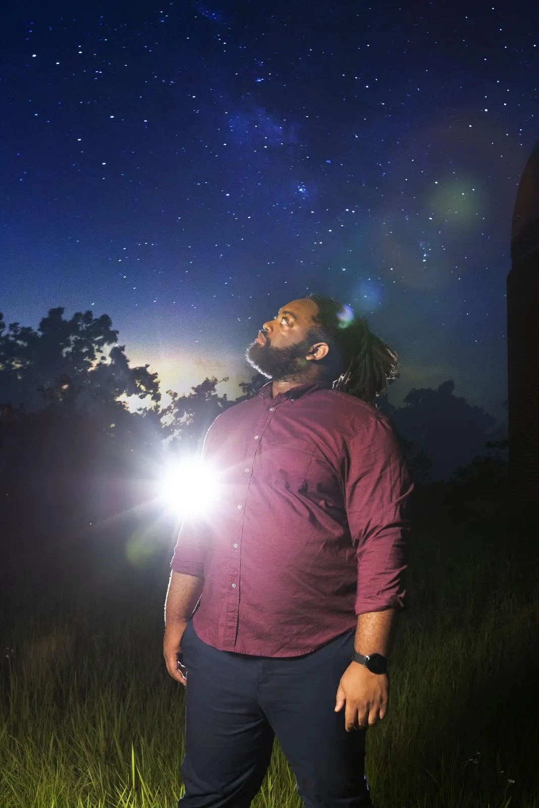Quadry Chance, a University of Florida Department of Astronomy graduate student, gazes up at the stars on a clear night at Rosemary Hill Observatory. Chance was named one of 2020's Pre-Doctoral Fellows at the Center for Computational Astrophysics making him the first at UF. This year, two more students joined him in earning this honor and I photographed them all to celebrate the achievement.