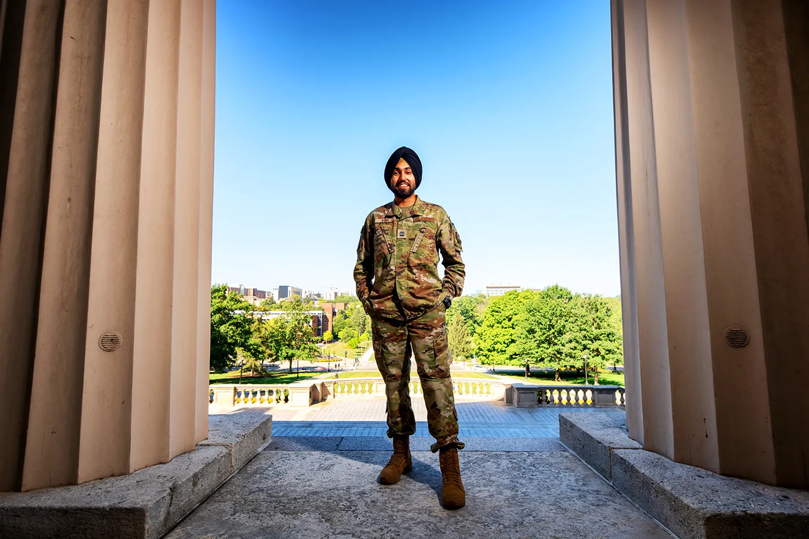 Cadet Gursharan Virk, a sophomore information assurance major at Detachment 255 at the university, is now allowed to wear Sikhism ceremonial accessories and abide by the religion’s grooming standards, which includes wearing a turban, necklace and bracelet, while having an uncut beard, in observation of his faith.