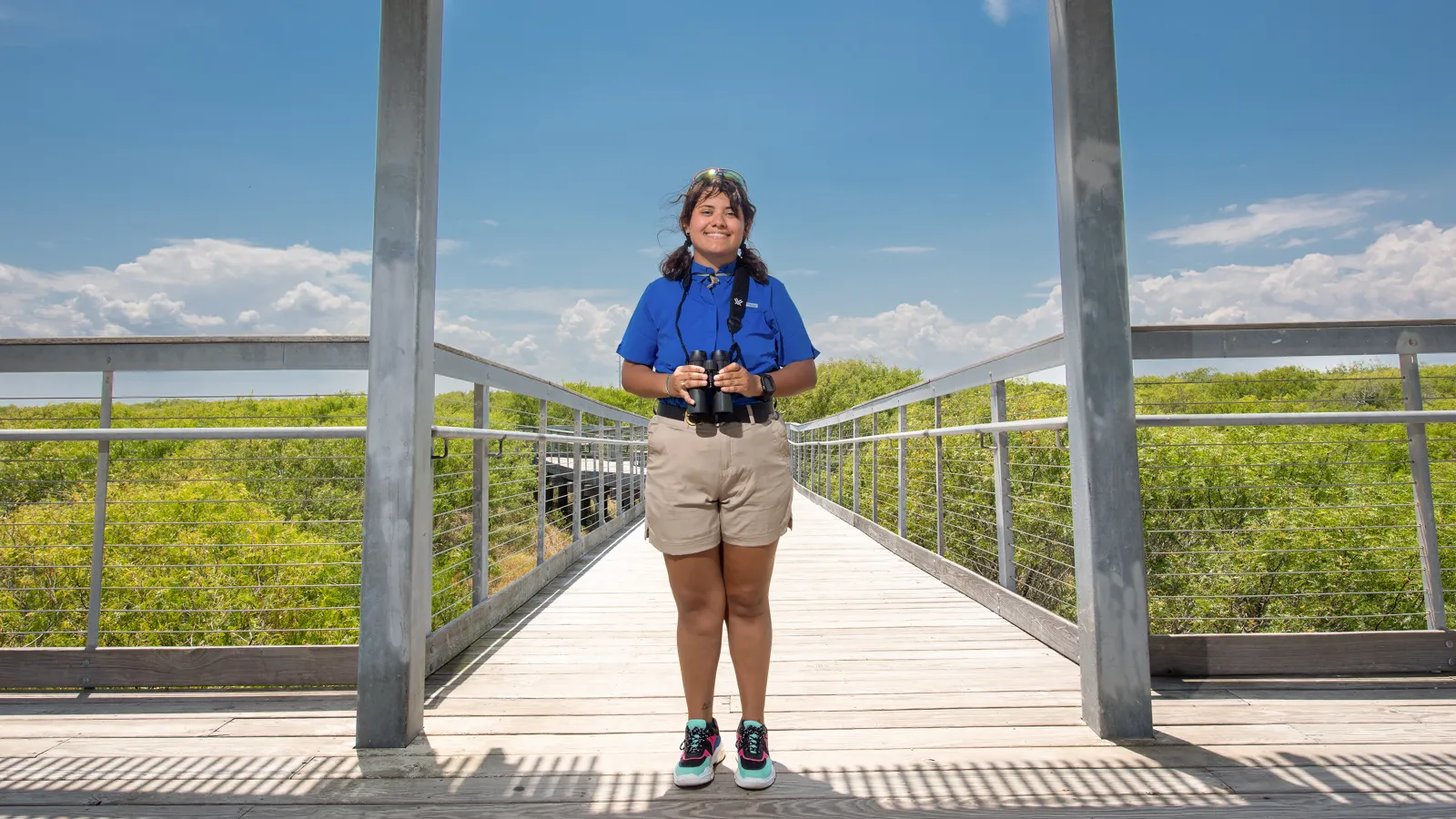 The TAMU-CC Alumni Association requested a photo shoot with a student to highlight internship opportunities in our community. Narita Ramirez is an Environmental Science Major interning at the Oso Bay Wetlands Preserve in Corpus Christi, Tx.