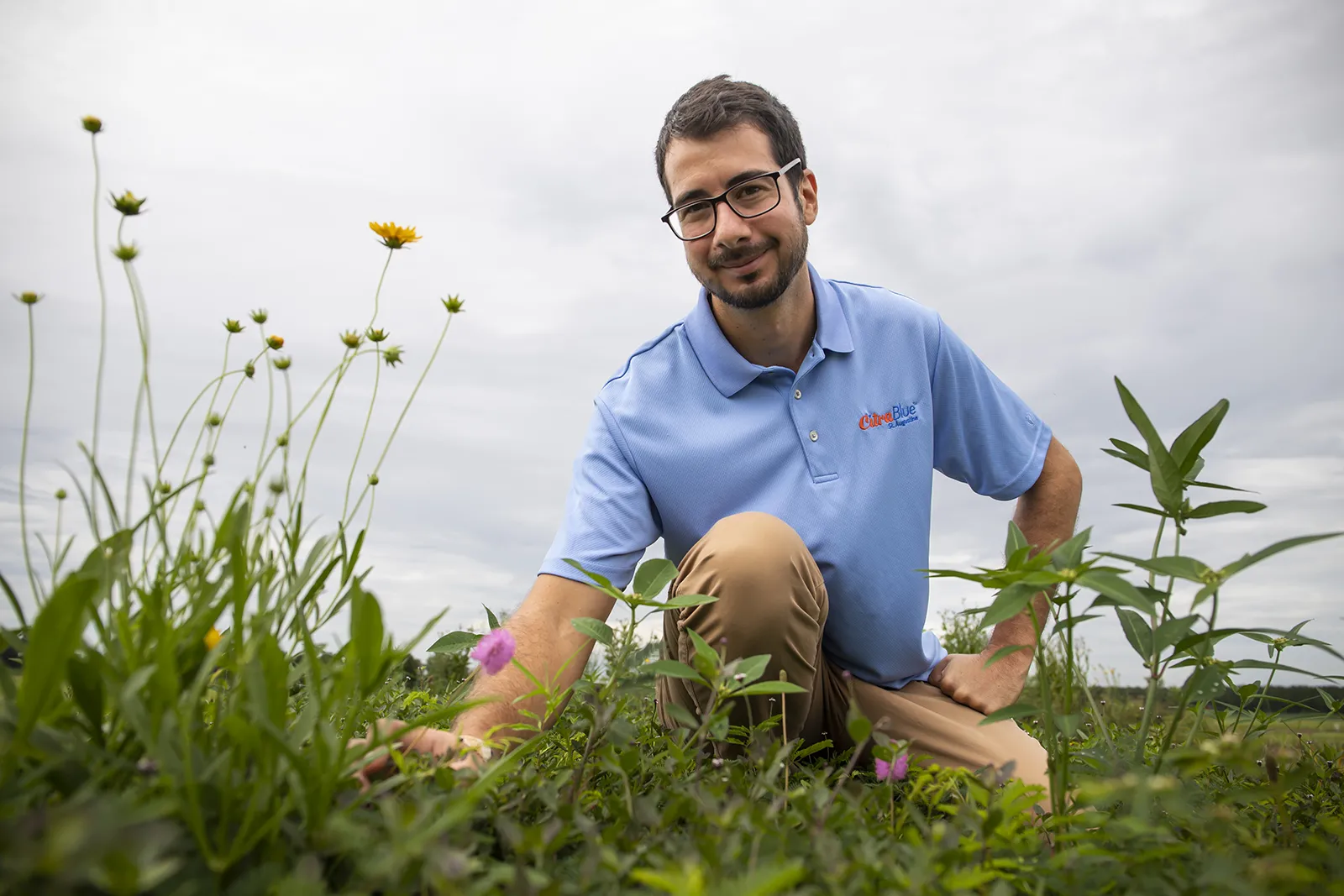 Graduate student Agustin Boeri smiles for the camera at the West Florida Research and Education Center in Jay, Florida. Photo taken 08-24-22.