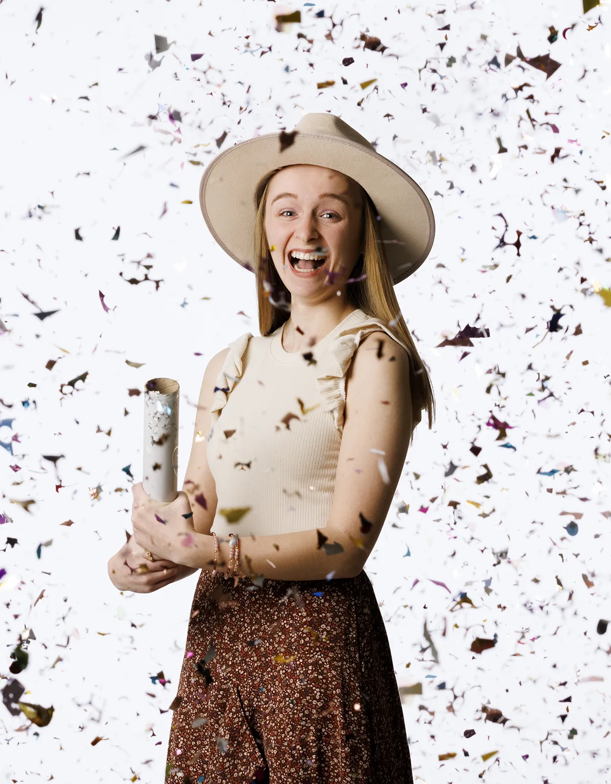 Brianna Gable is an Engler agribusiness entrepreneur who wants to open a wedding and event venue in her hometown. She shot off 4 poppers and the last one was the best. I'm still vacuuming up confetti in the studio.