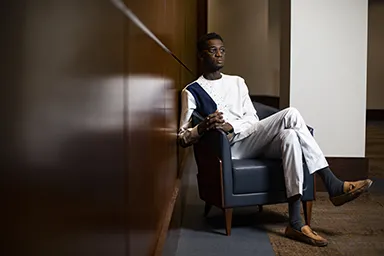 Scientist, activist, and UK alum Esias Bedingar photographed for the alumni magazine covering his work developing healthcare infrastructure in various African countries.
