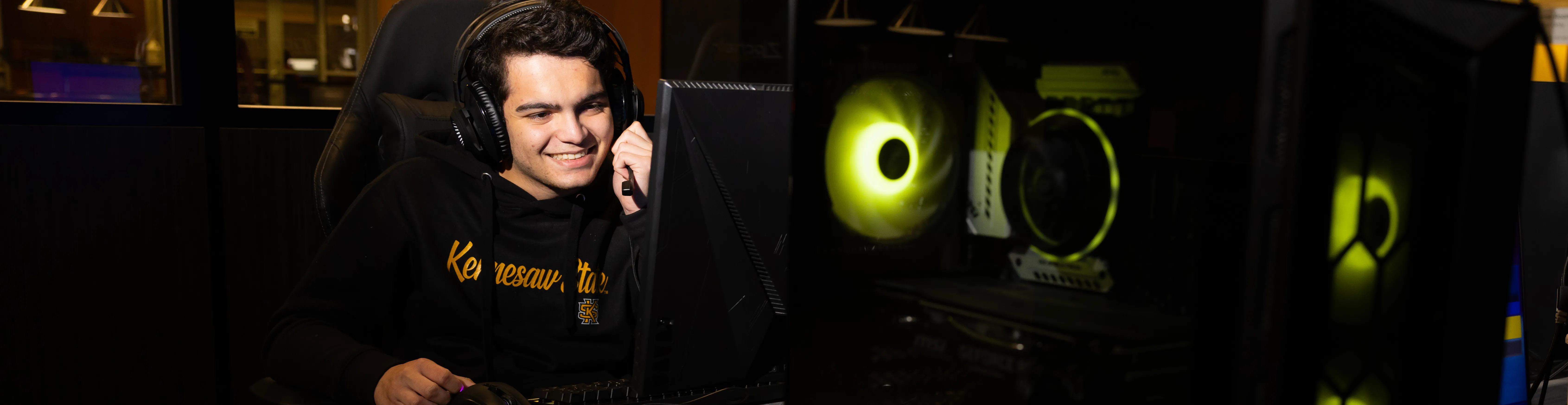 For our "first-semester student experience" series the first-year/first-semester student is Elliot Larez who is a Computer Science major and in the Honors College, and he is from Venezuela. He mentioned one of his favorite things to do on the Marietta campus is to play computer games in the game room of the Student Center. The extreme crop was for the front page rotating banner image of our website.