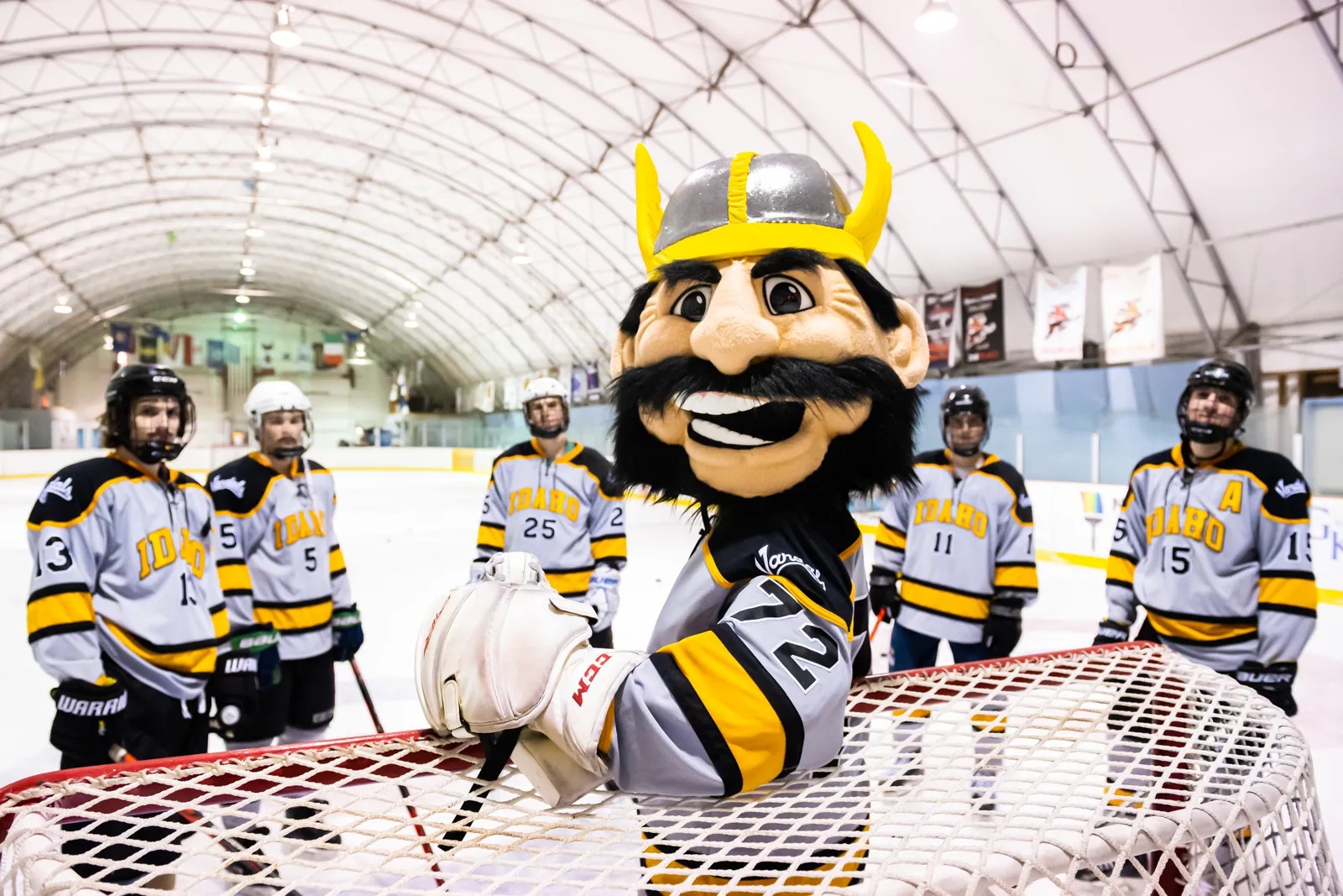Portrait of Joe Vandal and the Hockey sports club for social media campus winter package.