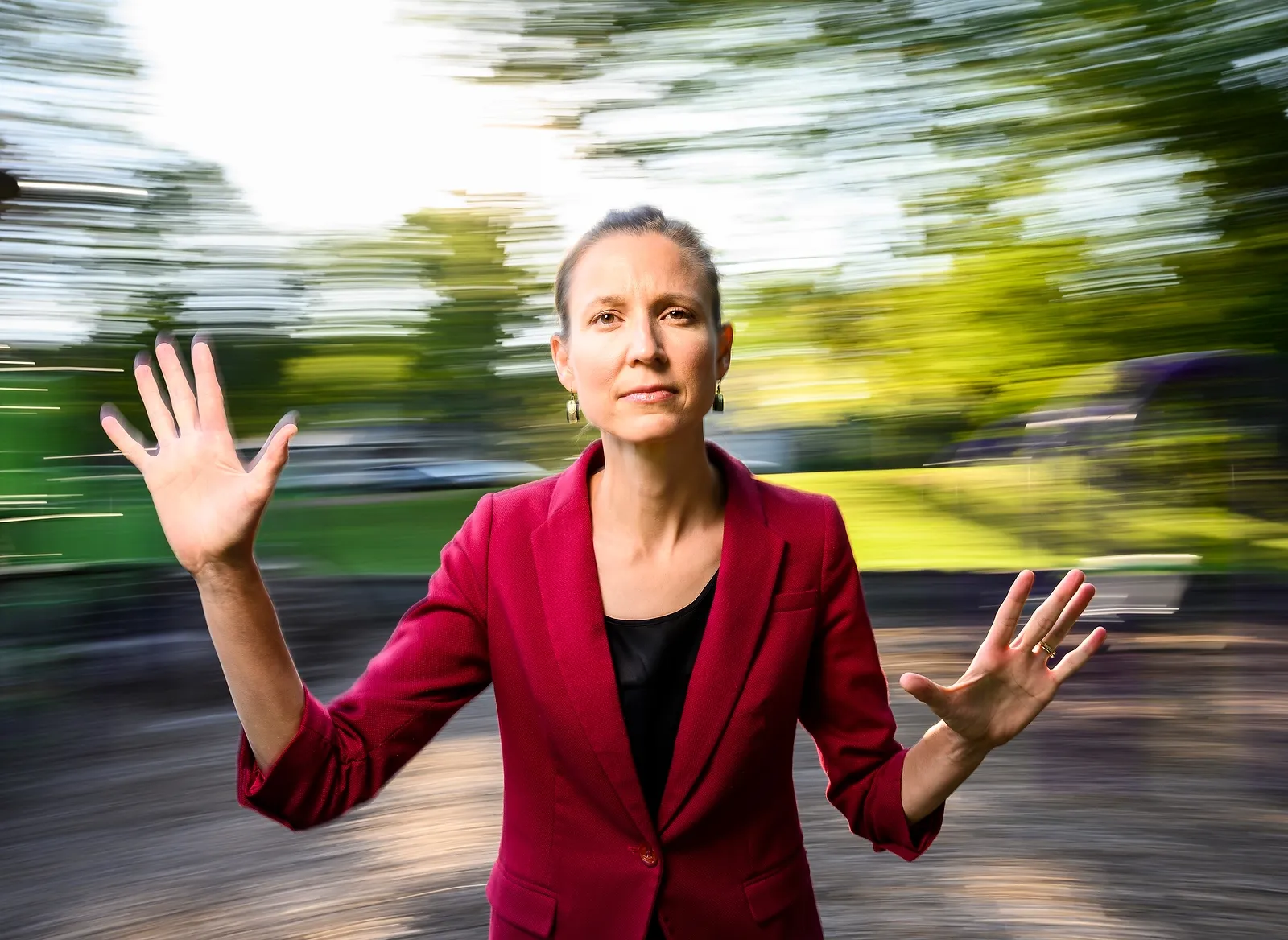 An expert on the mental health of athletes and sports psychology phenomenons such as the 'twisties" – the feeling when an athletic looses their sense of self moving in space – psychiatrist and clinical professor Claudia Reardon is pictured against a motion-blurred background on Sept. 17, 2021.