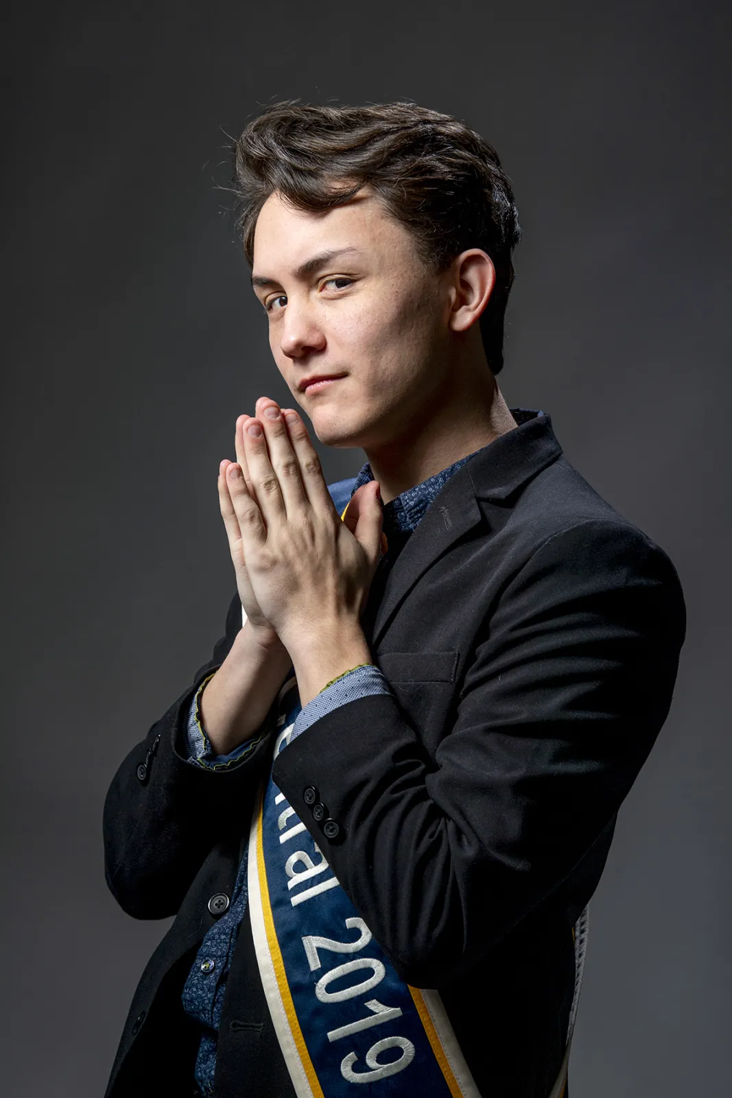 Nathan Ferrell poses for his promotional photos for Mr. Central 2019, a scholarship pageant for male college students.