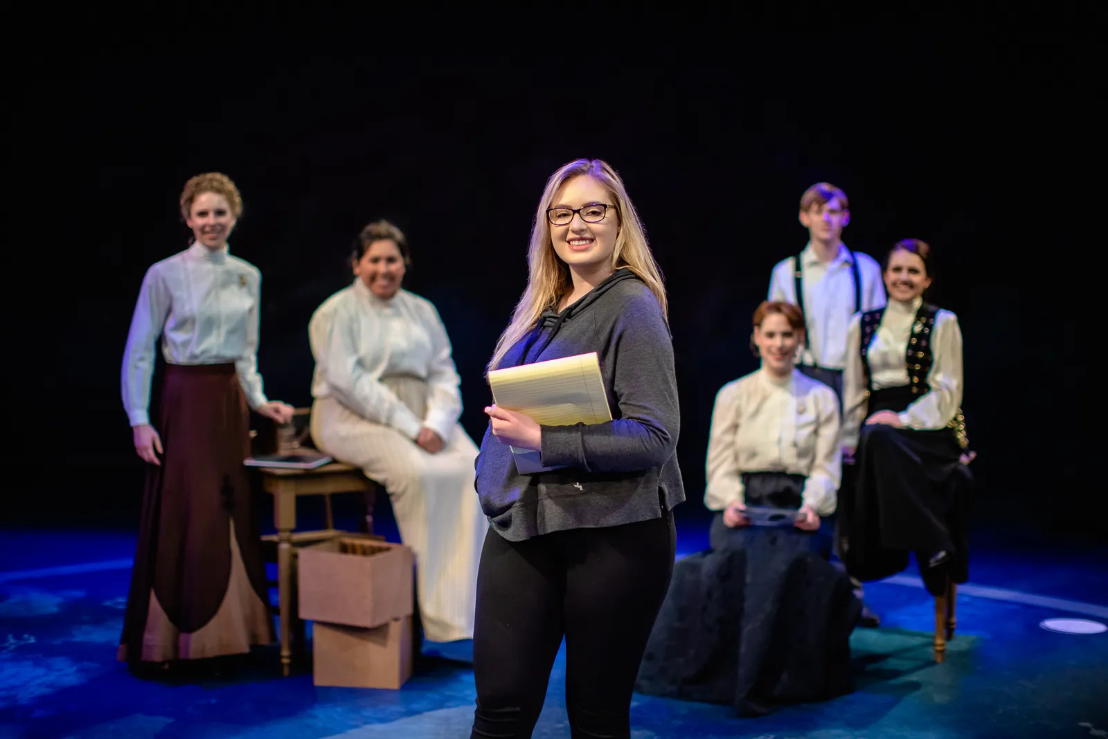 Student director, Brooke Henige, with her cast for Lauren Gunderson’s Silent Sky.