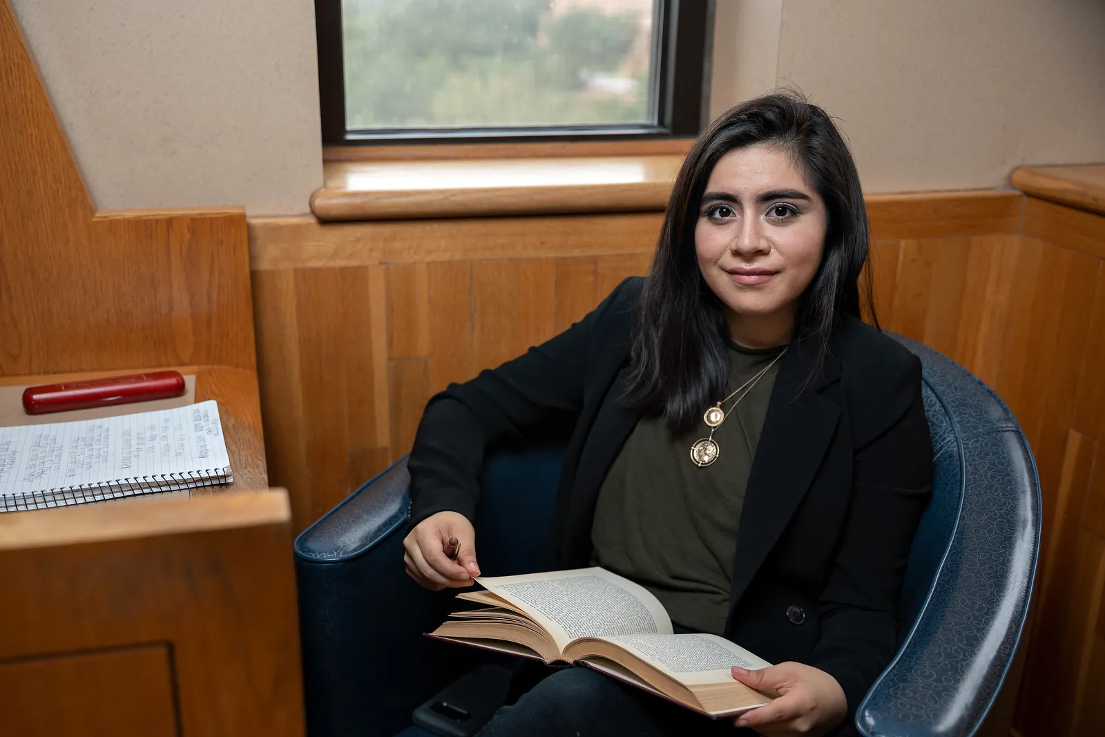 Dora Cantu, UTRGV English and Mexican American Studies student from Hidalgo, photographed at her preferred studying area in the University Library in Edinburg, Texas.