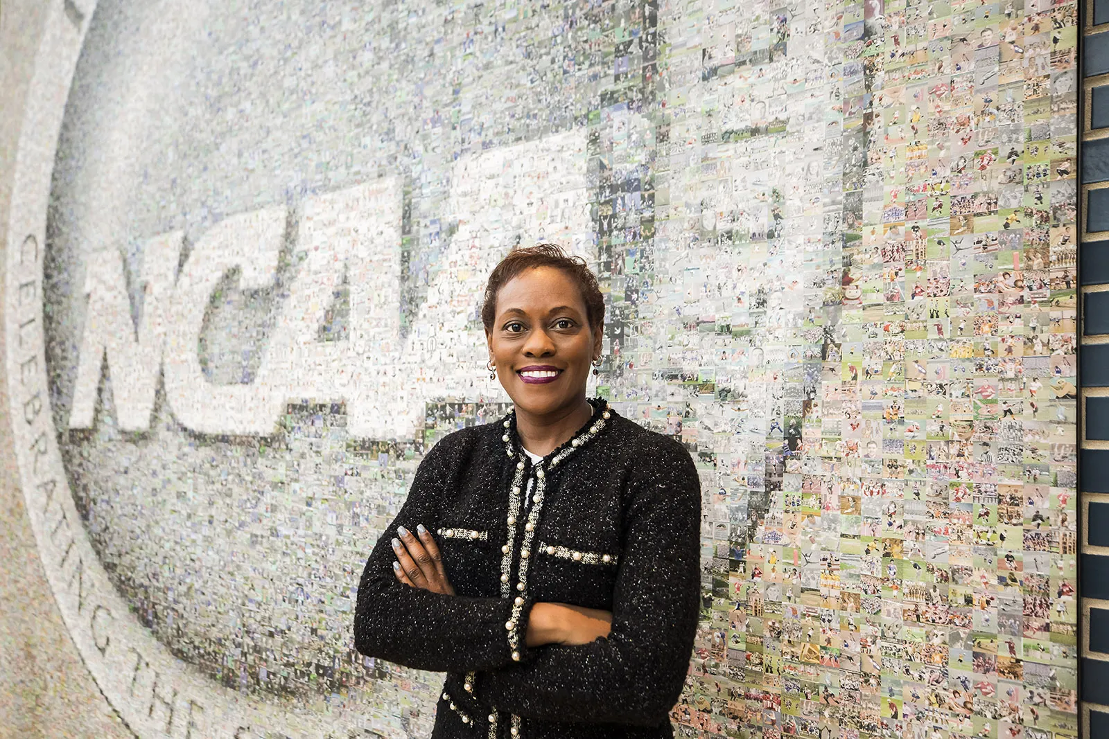NCAA employee Gail Dent, smiles, as she poses for a photo at the headquarters in Indianapolis.