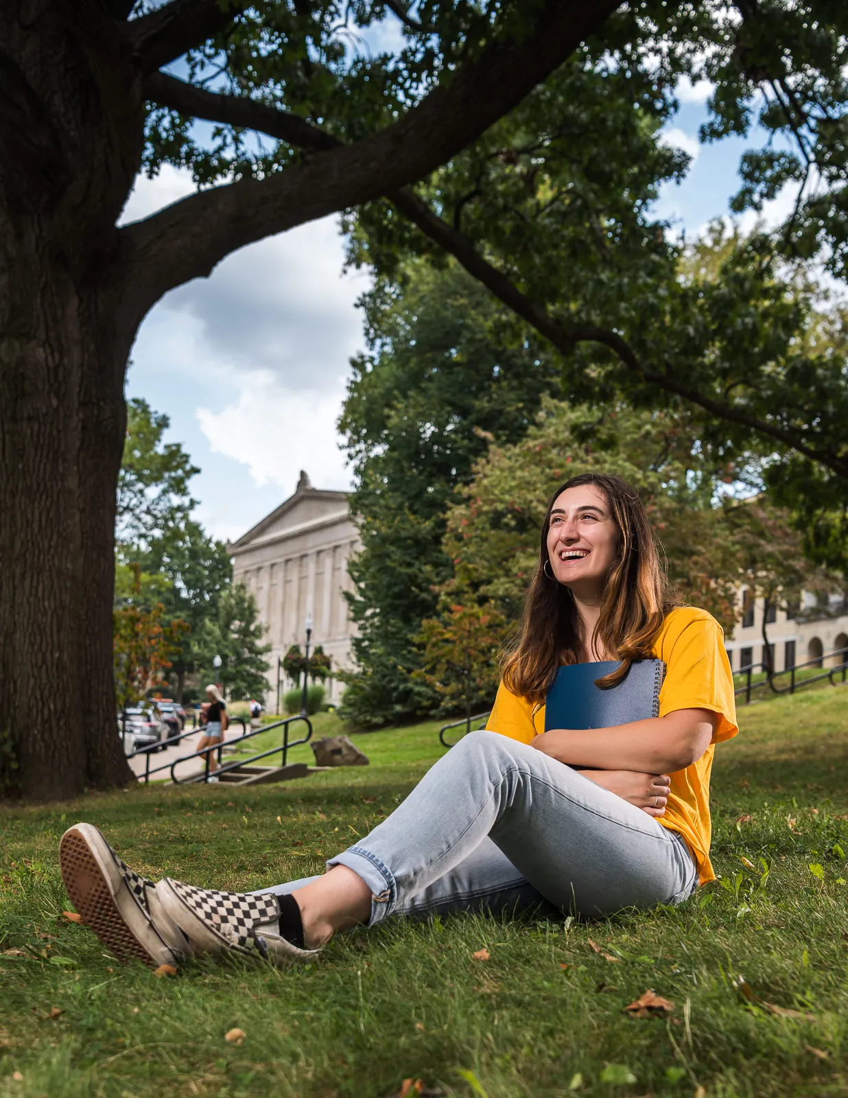 Senior Public Relations Major, Leah Marxen, enjoys one of the last days of summer on Kent State University's front campus.