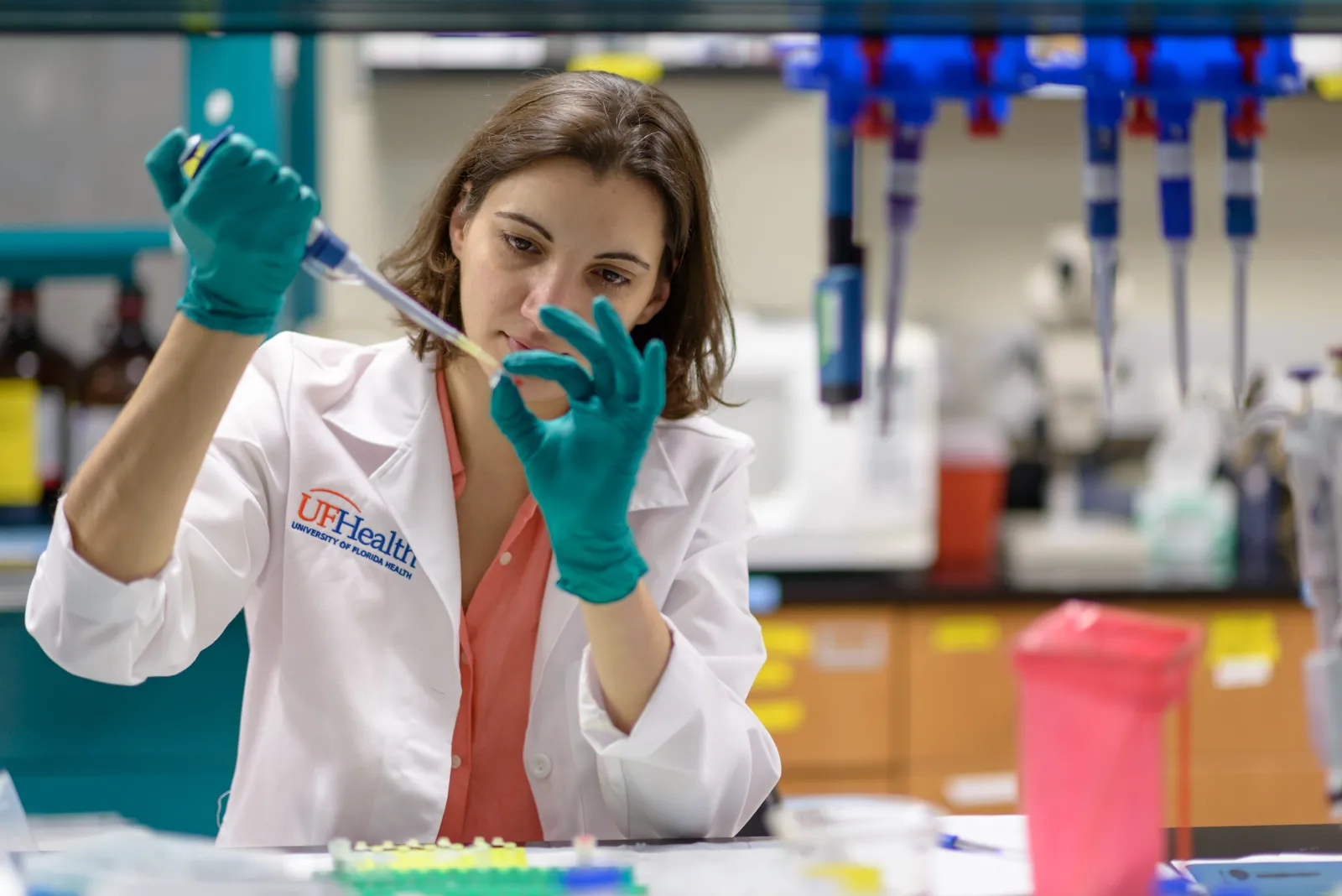 Dr. Lorena de Mena Alvarez, a Neuroscience Post Doc working in her lab at the University of Florida McKnight Brain Institute.