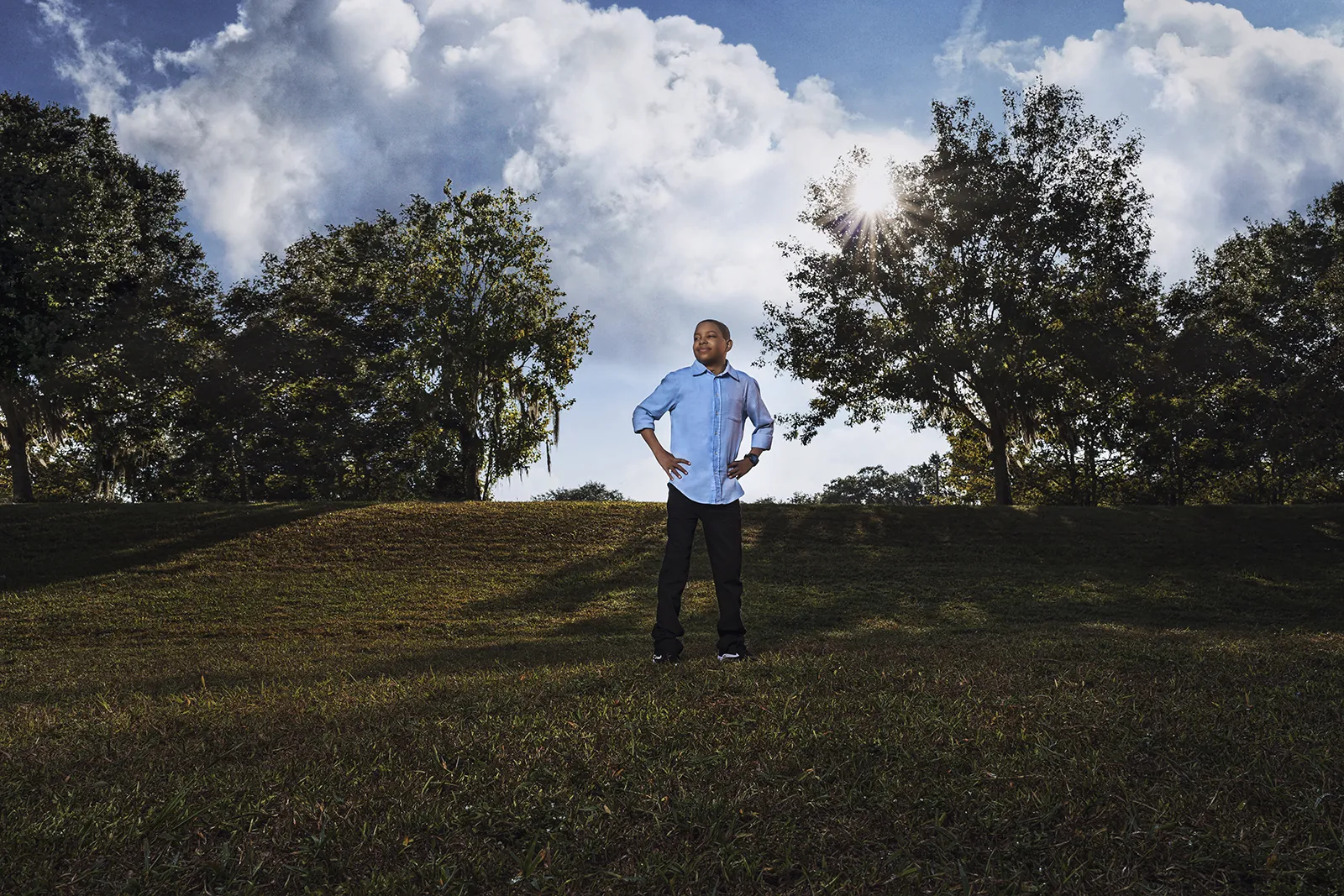 Andy Herrera, or Ecmo Andy as he has become known poses for a portrait almost 1-year after his heart transplant. Andy and his family are attempting to get a place in the Guinness Book of World Records for the longest a patient has ever been on an Ecmo Machine. Herrera spent 1-year and 1-month on Ecmo. The average length a patient spends on Ecmo is just over a month.