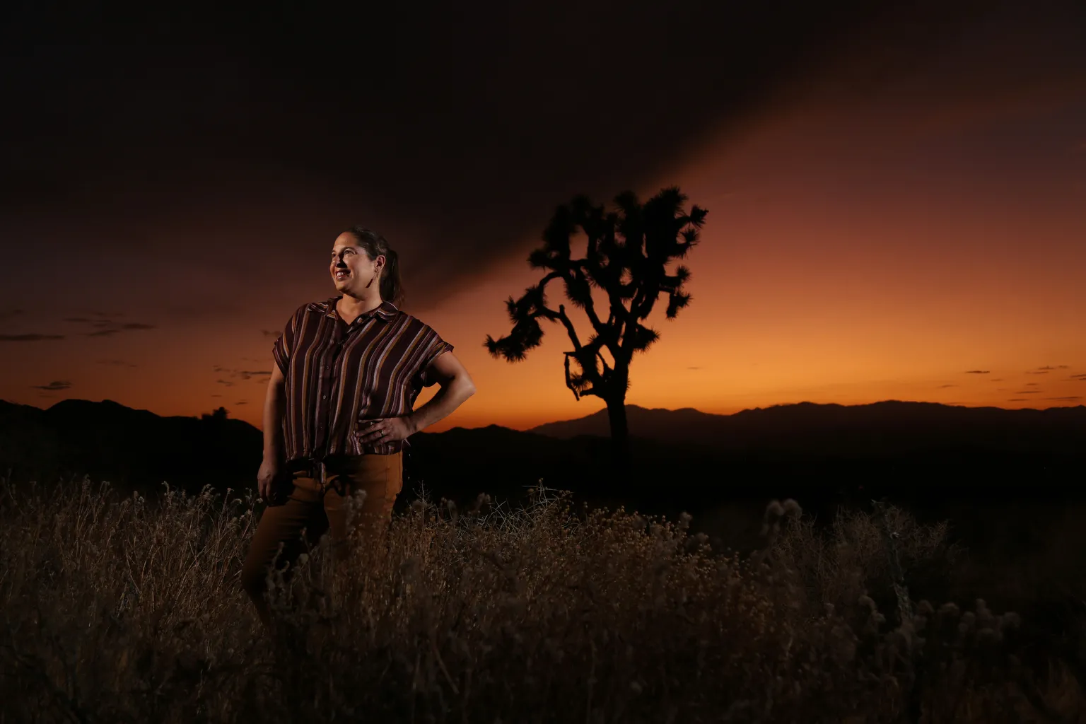 Portrait of UCR Associate Specialist Dr. Lynn Sweet, near a Joshua Tree on September 3, 2019 in the Joshua Tree National Park. Sweet is leading a project that is studying the climate change and how it's affecting the Joshua Trees.